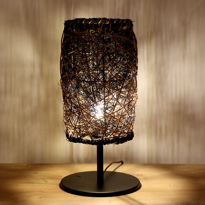 Afrika 20x45x20 cm. Siyah Ayaklı Rattan Masa Lambası