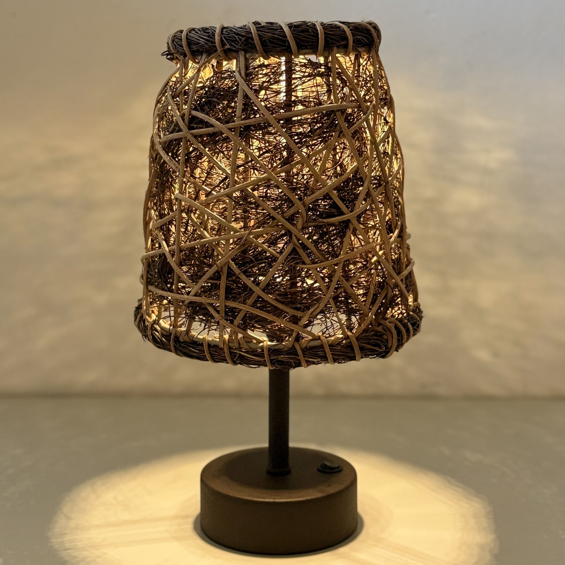- Doğal Rattan ile galvaniz kafes üzerine 17x17 cm ölçülerinde örülmüş solar masaüstü başlık.