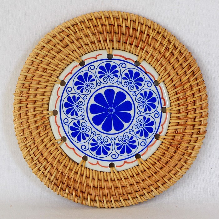 • Rattan Çerçeveli 20 cm. Mavi Çiçekler Desenli Dekoratif Obje & Nihale