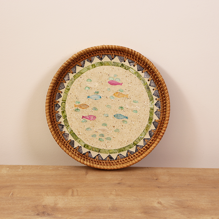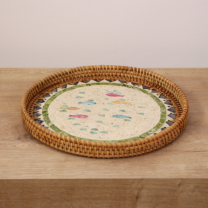 - Rattan ve sedefli mozaikten el işiliği ile üretilmiştir.