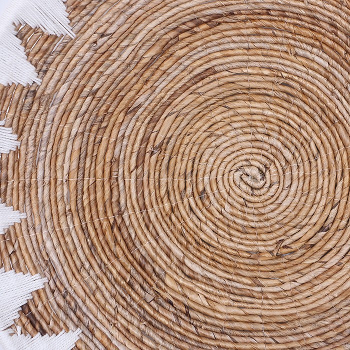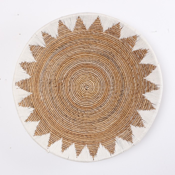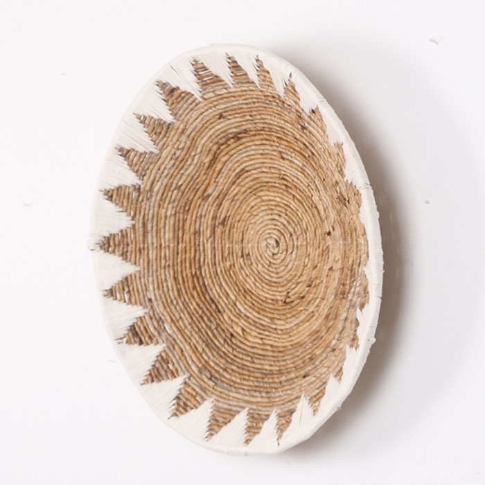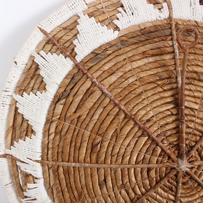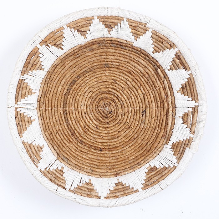 - Ürünümüzün tamamı doğal abaka bitkisinden zanaatkar ustalarımızca, yine abaka yaprağı sarılı tabak şeklinde demir kafes, üzerine pamuk ipliği ile desen verilerek el işçiliği ile üretilmiştir.