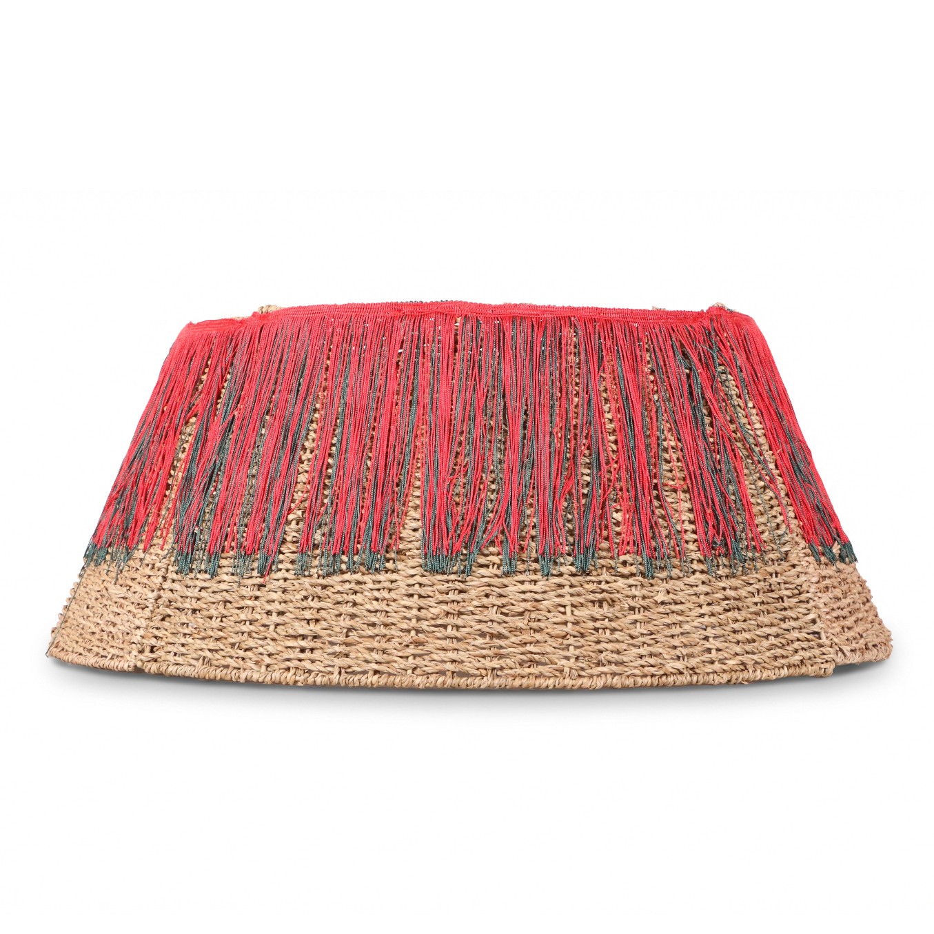 Doğal Hasır ve Kontrast Püsküllü Ağaç Eteği 73x51x28 cm