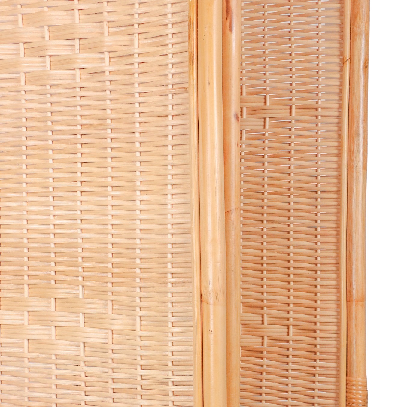 Yüzeyinde kullanılan sık ve el örgüsü doğal rattan malzeme, mahremiyeti sağlarken, mekana sıcak bir bal tonu ve organik bir doku kazandırır. 3 adet katlanabilir kanat yapısı sayesinde, alanları esnek bir şekilde bölme, gizlilik sağlama veya sadece dekoratif bir arka plan oluşturma imkanı tanır. El işçiliğiyle şekillendirilmiş her bir parça, kendine özgü doğal bir karaktere sahiptir. Salon, yatak odası veya konsept dekorasyon alanlarında dikkat çekici bir tasarım unsuru haline gelir.