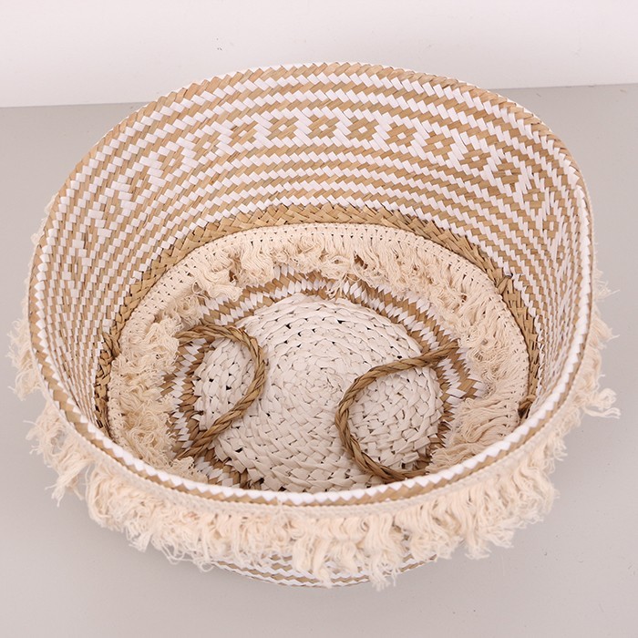- Sepetimiz doğal deniz sazı ve pamuk ipliğinden el işçiliği ile imal edilmiştir..