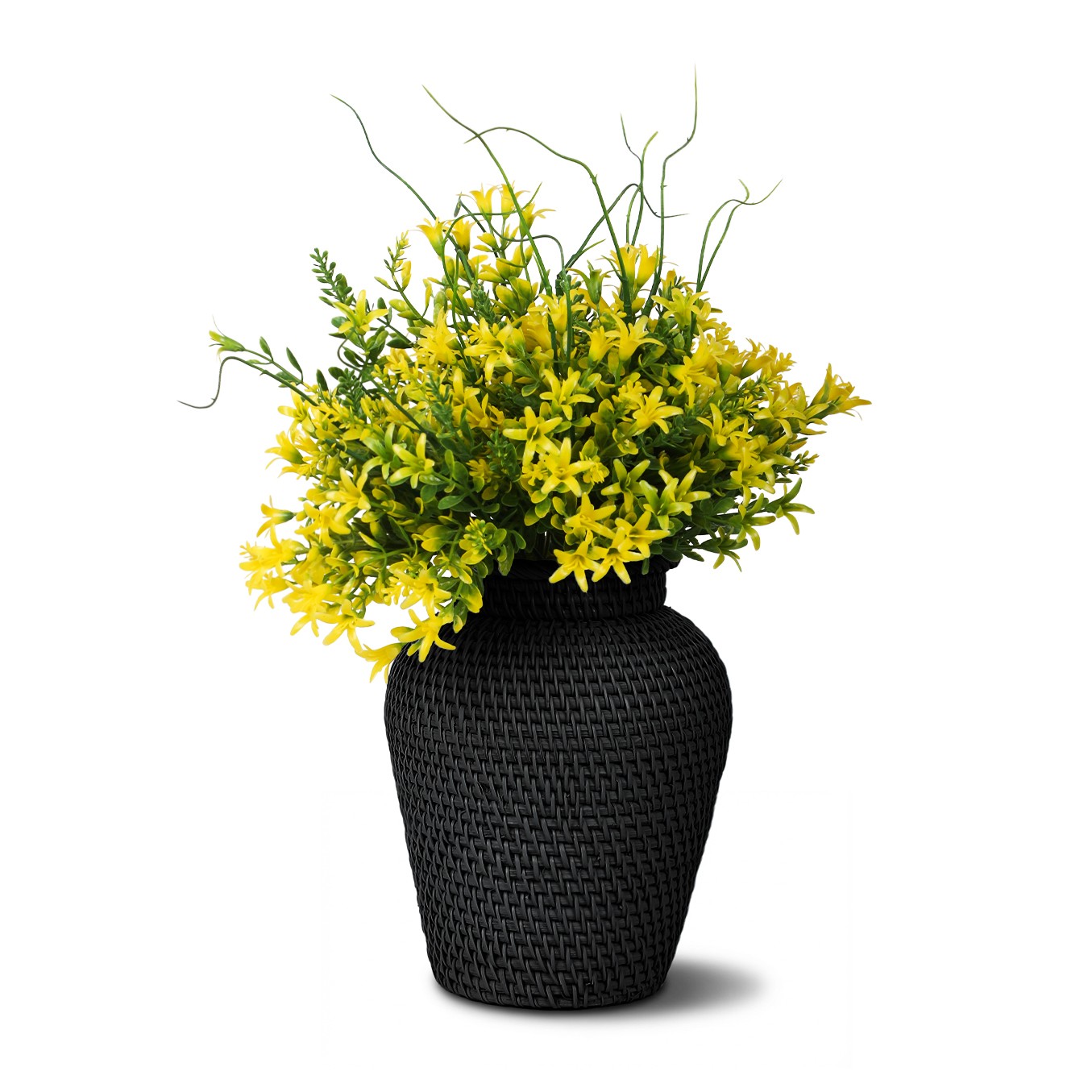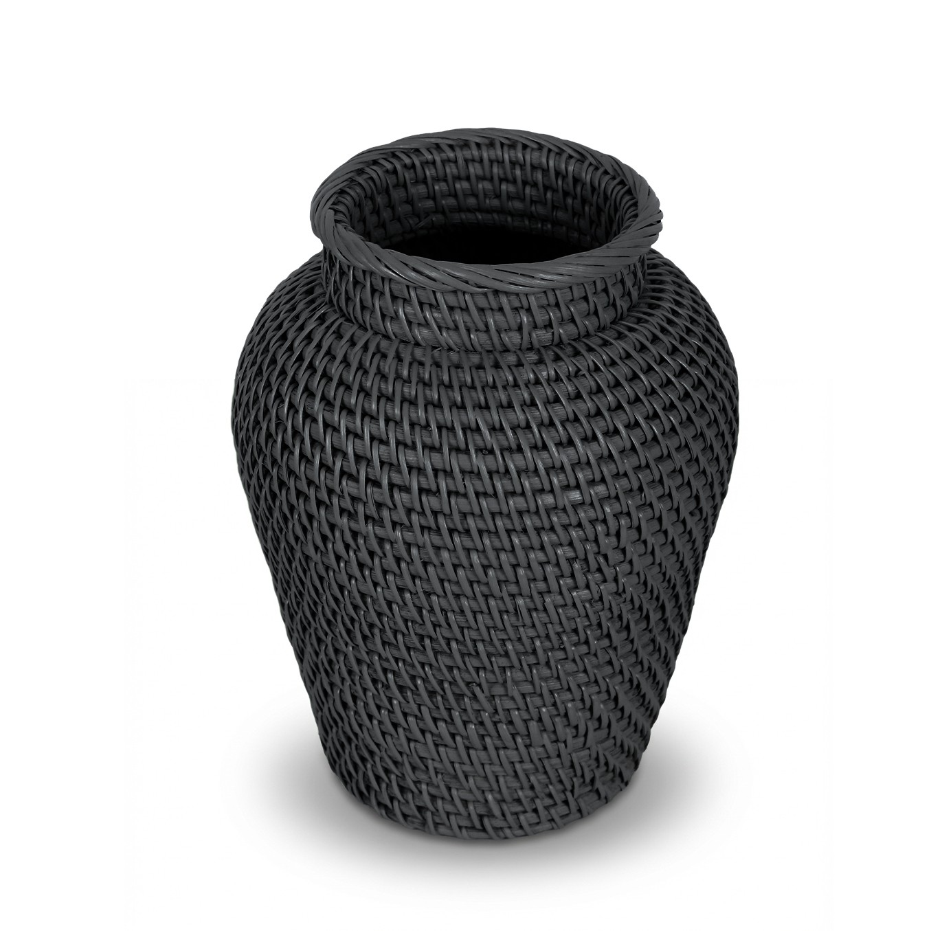 Laura Rattan Mini Siyah Vazo, tek başına şık bir heykel olarak veya kuru çiçek/dekoratif dallar ile birlikte kullanılabilir. Sınırlı alanı olan konsol, kitaplık ve çalışma masaları için ideal bir aksesuardır.