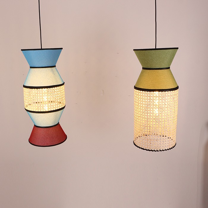 - hazeran malzemeden ve pvc tabanlı ışık geçirgenliği olan renkli hasır dokulu abajur kumaşından, statik boyalı tel üzerine el işçiliği ile üretilmiştir..