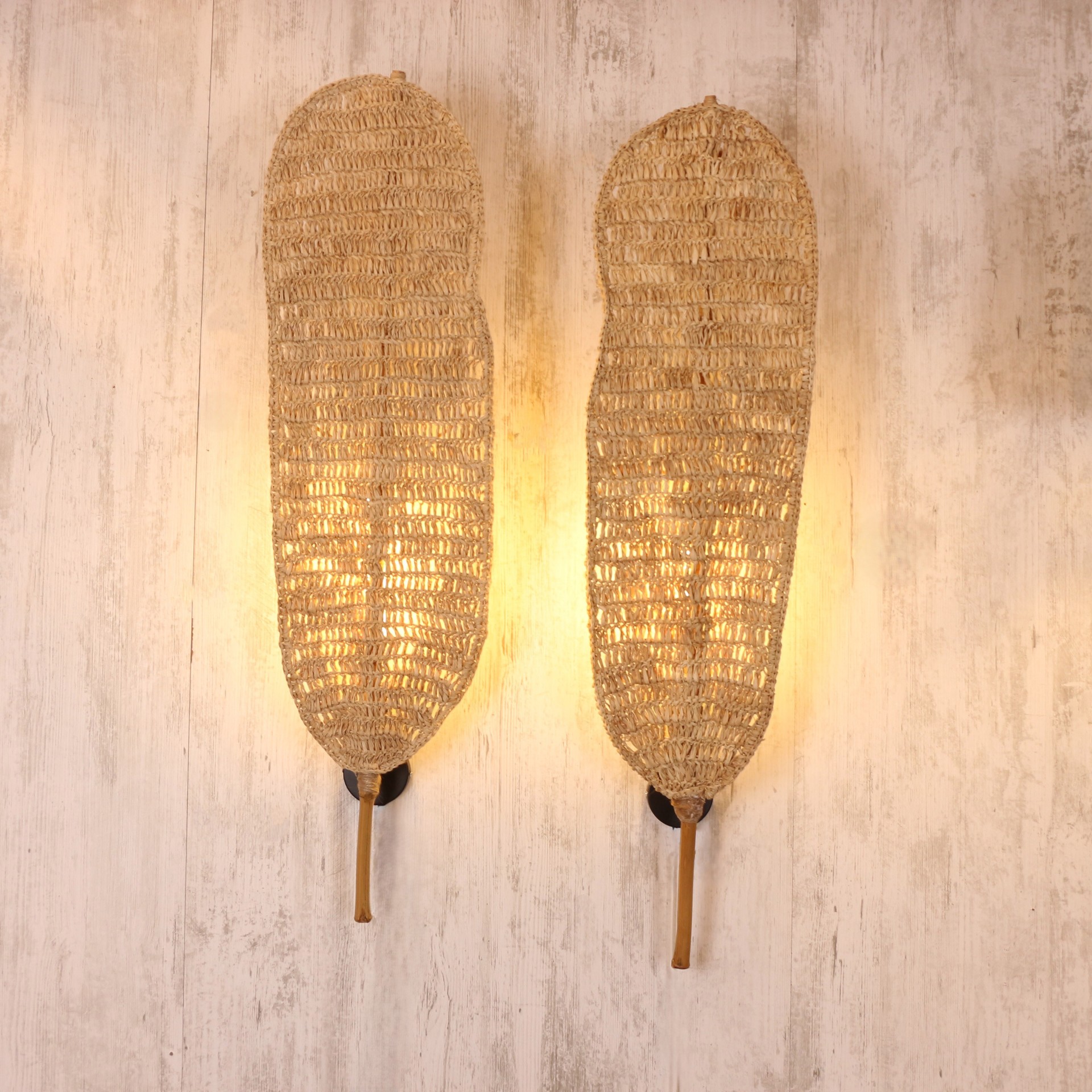 - El yapımı doğal rafya duvar apliği, dekorasyona sıcak ve doğal bir dokunuş katar. Bohem, rustik ve minimal tarz evler için ideal olan bu özel tasarım, %100 el işçiliği ile üretilmiştir. Doğal liflerin estetik örgüsü sayesinde mekânınıza hem ışık hem de karakter kazandırır. Bu yüzden herbiri farklı ve eşsizdir.