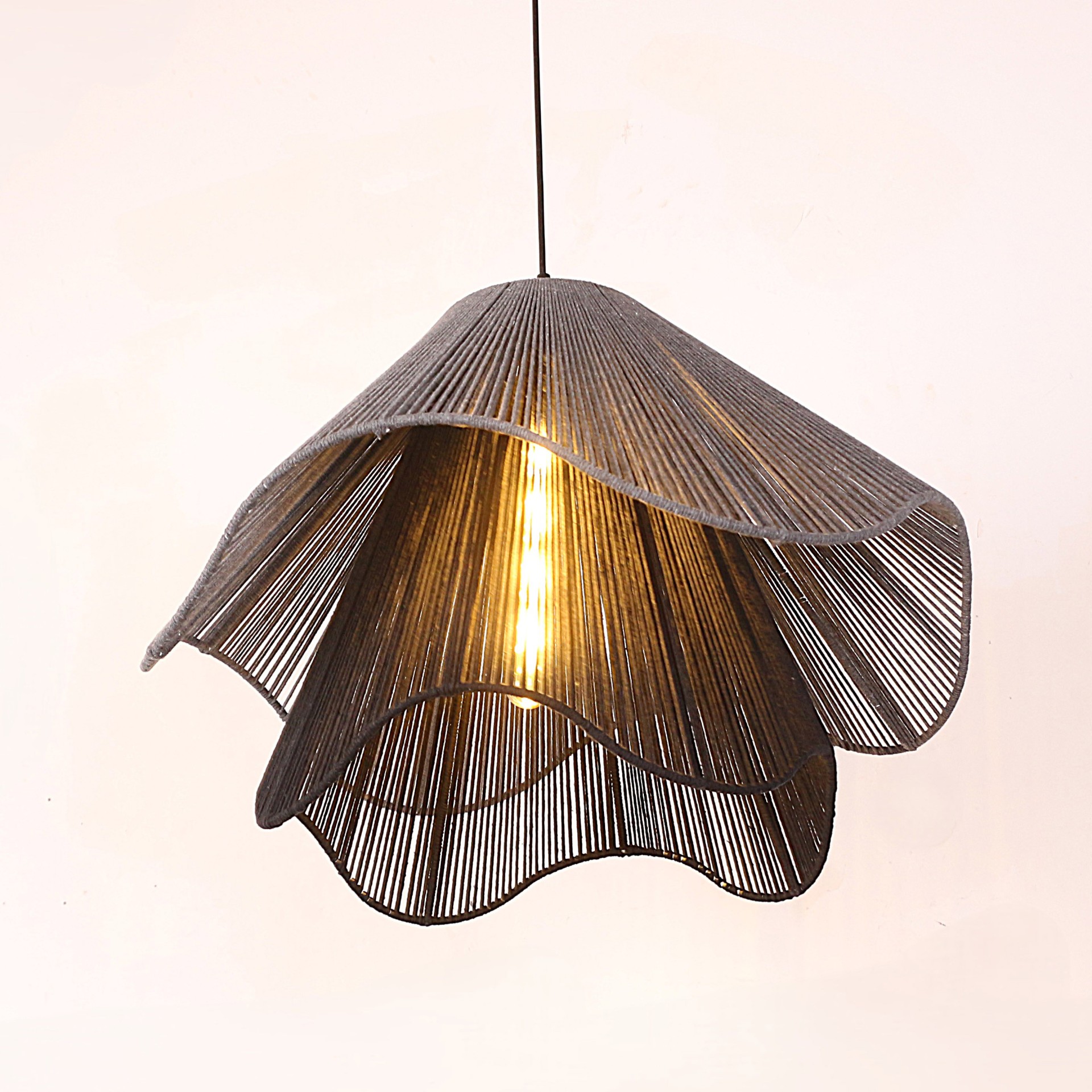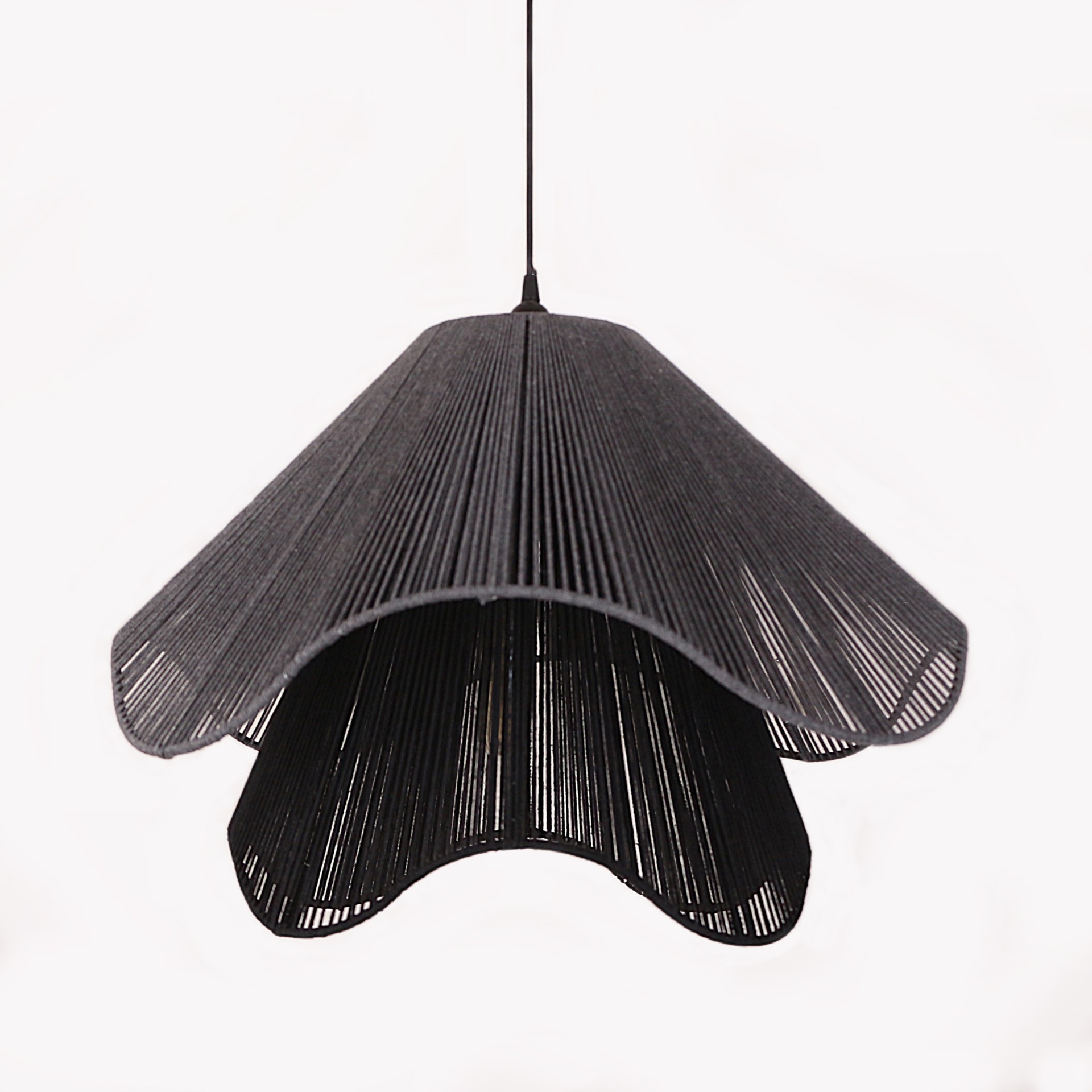 55 cm çap ve 45 cm yüksekliğe sahip bu özel tasarım, çift katlı dalgalı formuyla dikkat çeker. El emeğiyle örülen makrome ipler, ışığı filtreleyerek ortama yumuşak bir aydınlık yayar. Bu da evinizde veya mekânınızda sıcak ve davetkâr bir atmosfer oluşturur.
