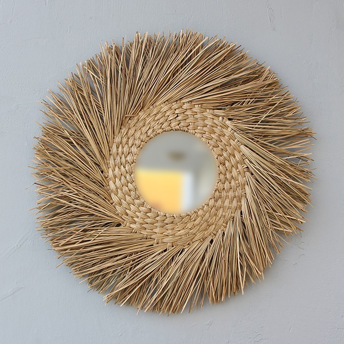 Ürün ölçüleri; En: 76 cm. ve Uzunluk: 76 cm. dir. Ayna çap ölçüleri 25 cm.'dir. Ürünümüz el işçiliği ile yapılmış olup, deniz sazından imal edilmiştir.