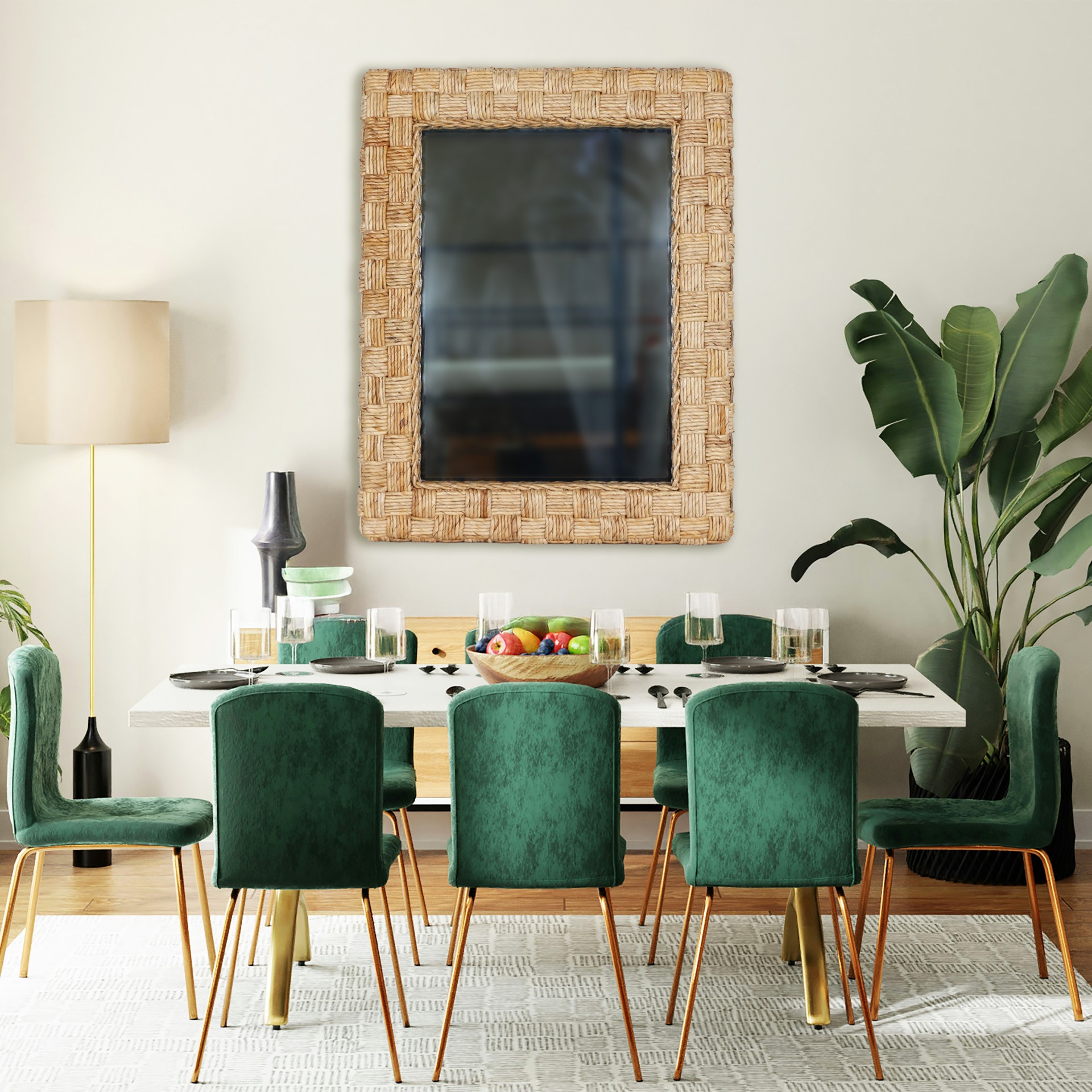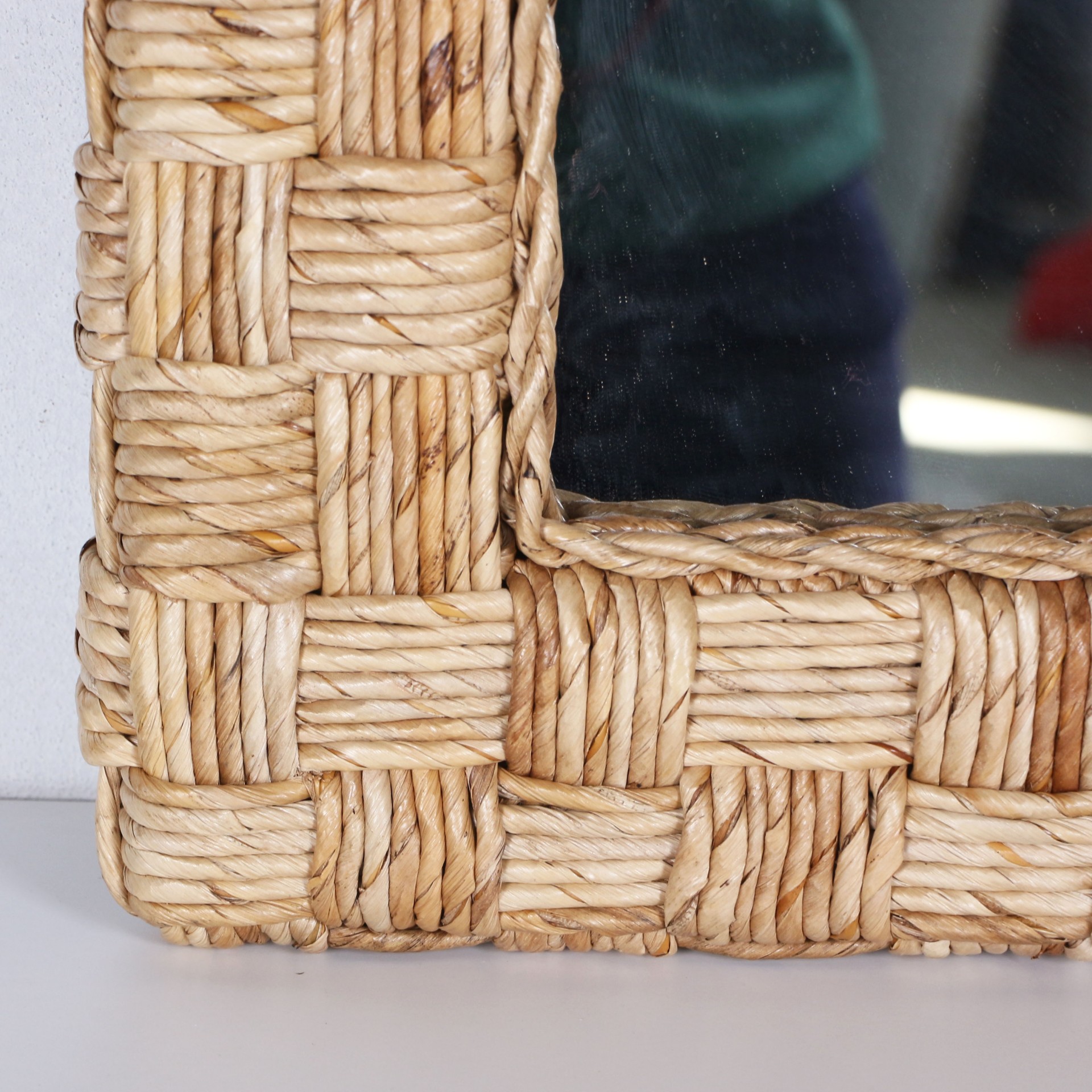 Ürünümüz Doğal Abaka bitkisinden ve fırınlanmış Maun ağacının çerçevesi üzerine örülerek birinci sınıf el işçiliği yapılmıştır. PU vernikle çerçevesi boyanarak korunmuştur. Aynanın arkasında duvar ile teması koruyan su kontrası kaplama mevcuttur.