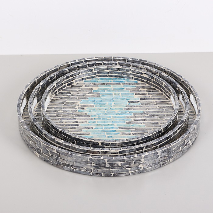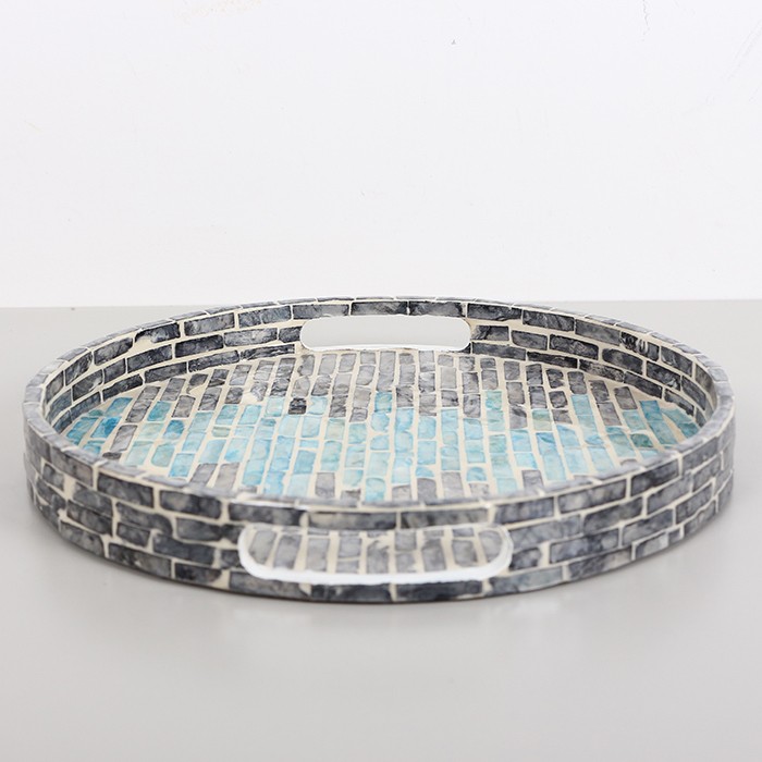 PURE SEDEF 30 x3,5 cm. Black/Blue Sedefli Mozaik Tepsi