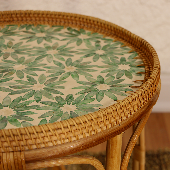 Anita 40x44 cm Sedefli Mozaik Rattan Sehpa