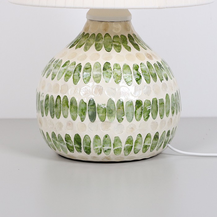 Ürünümüzün şapka kısmı; statik boyalı tel kafes üzerine el işçiliği yapılarak sıcak kesim krep demor pileli kumaş ile kaplanmıştır. Ürünümüzün gövde kısmı ise, Doğal Bambunun ince ince kesilip birleştirilmesi ve el işçiliği ile vazo şeklini verilerek, doğal sedeflerden üretilmiştir.