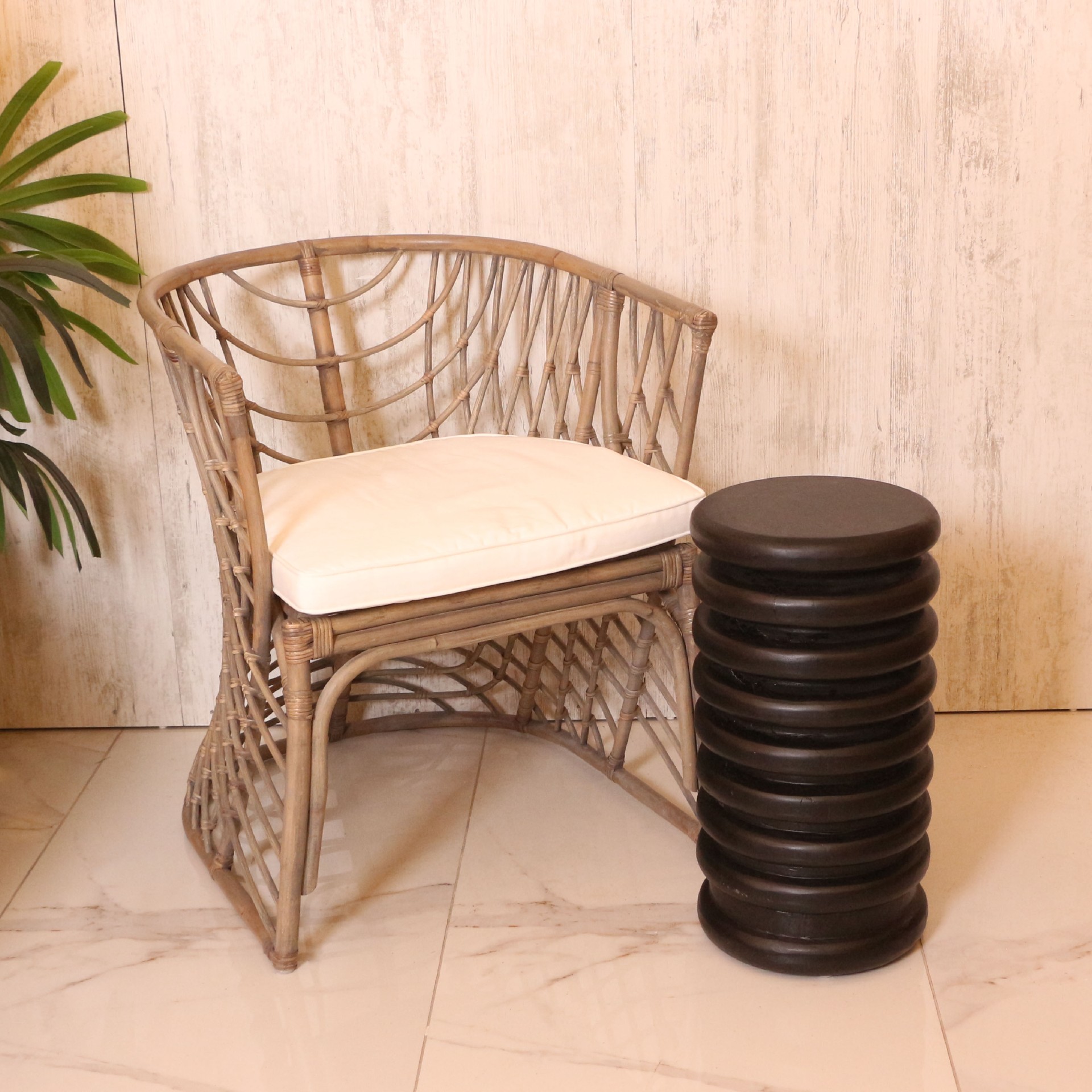 Kubu rattan, Endonezya gibi tropikal bölgelerde yetişen rattan bitkisinden doğal yollarla elde edilir. Kendi rengini ve dokusunu doğal süreçlerle kazanan çevre dostu bir malzemedir.