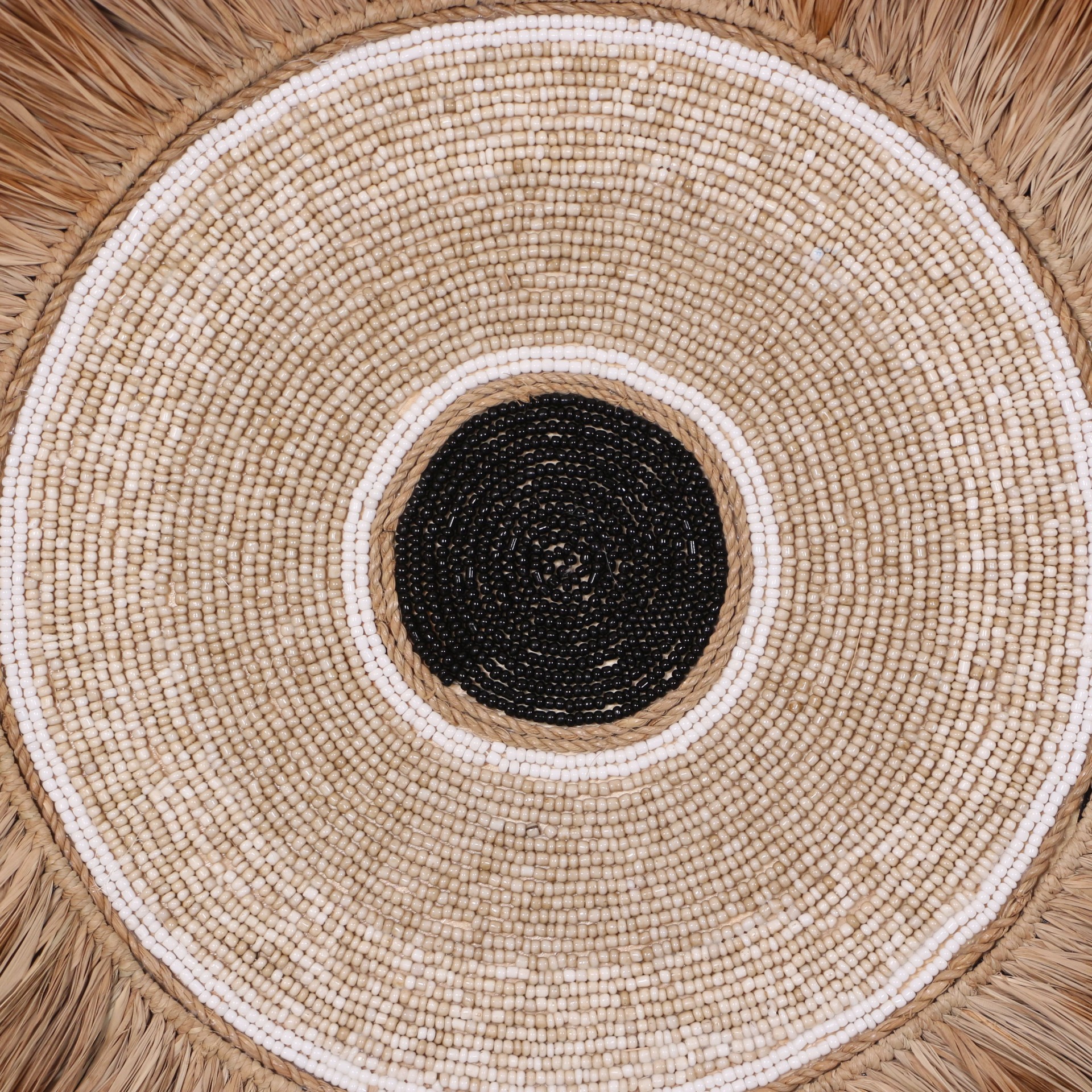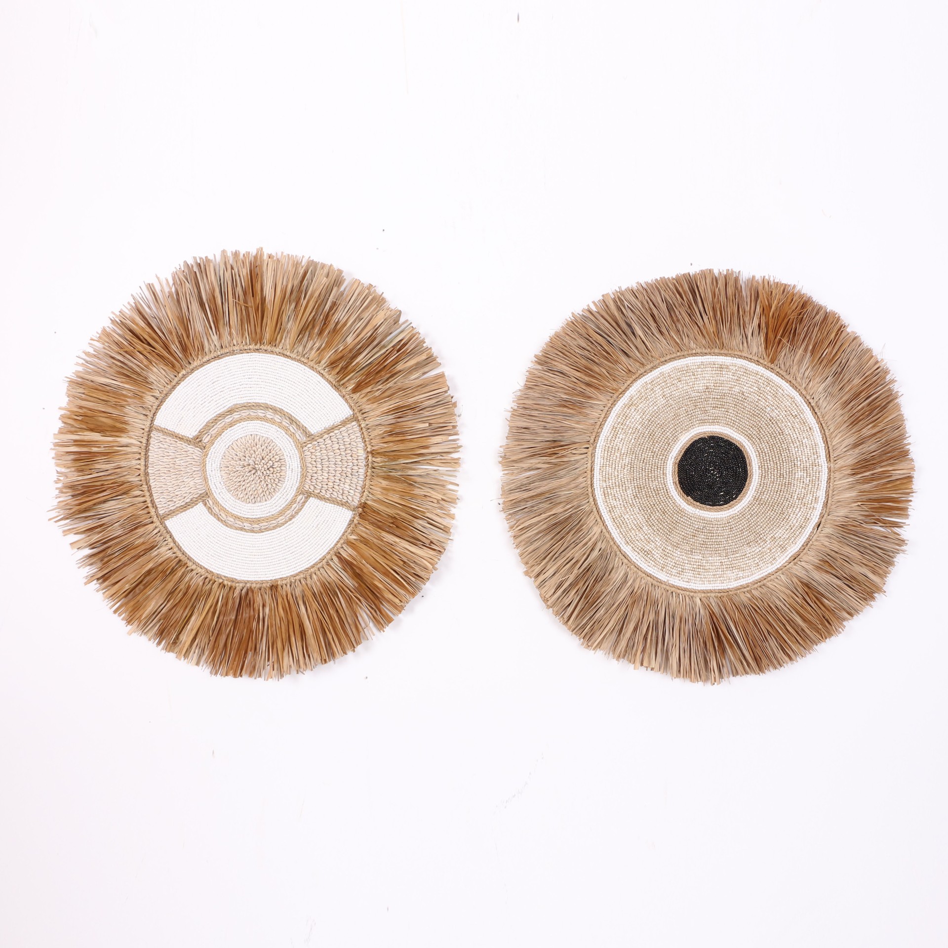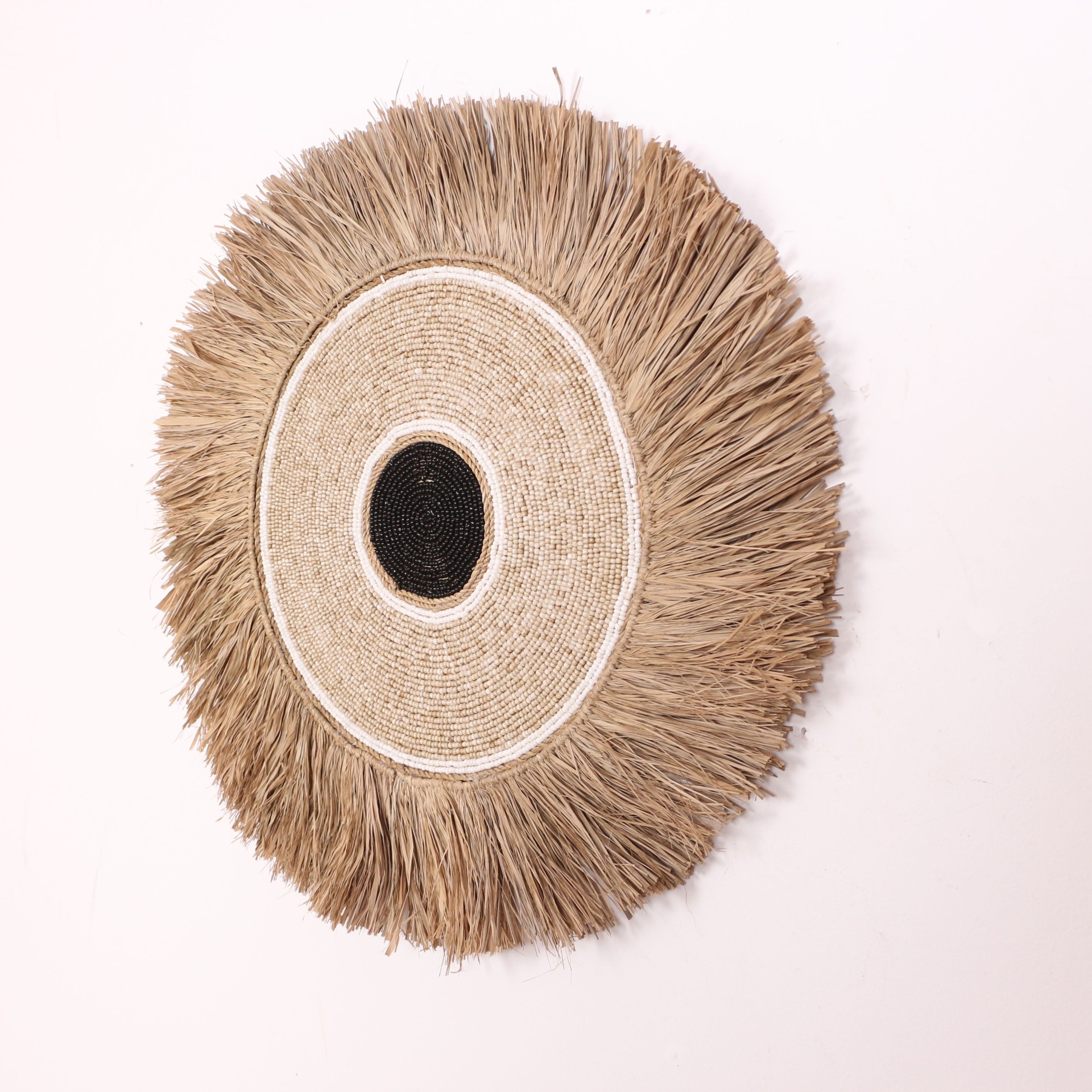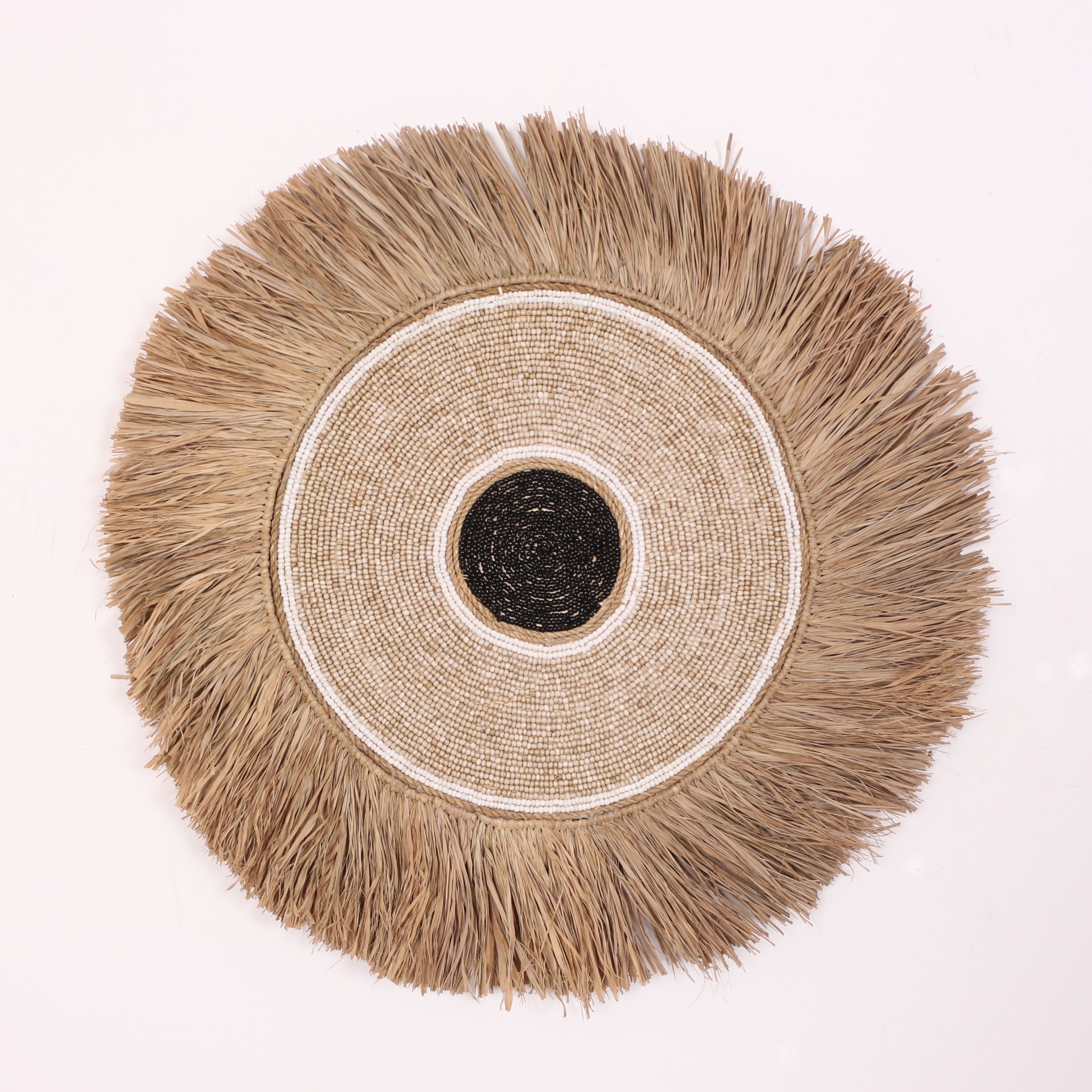 - Tamamı el işçiliği ile Doğal Rafya, Cam boncuklardan ve Deniz Kabuklularından yapılan ürünümüzün; arkası kumaş kaplı ince mdf üzerine yapılmıştır. El işçiliği olduğu için her biri eşsizdir.