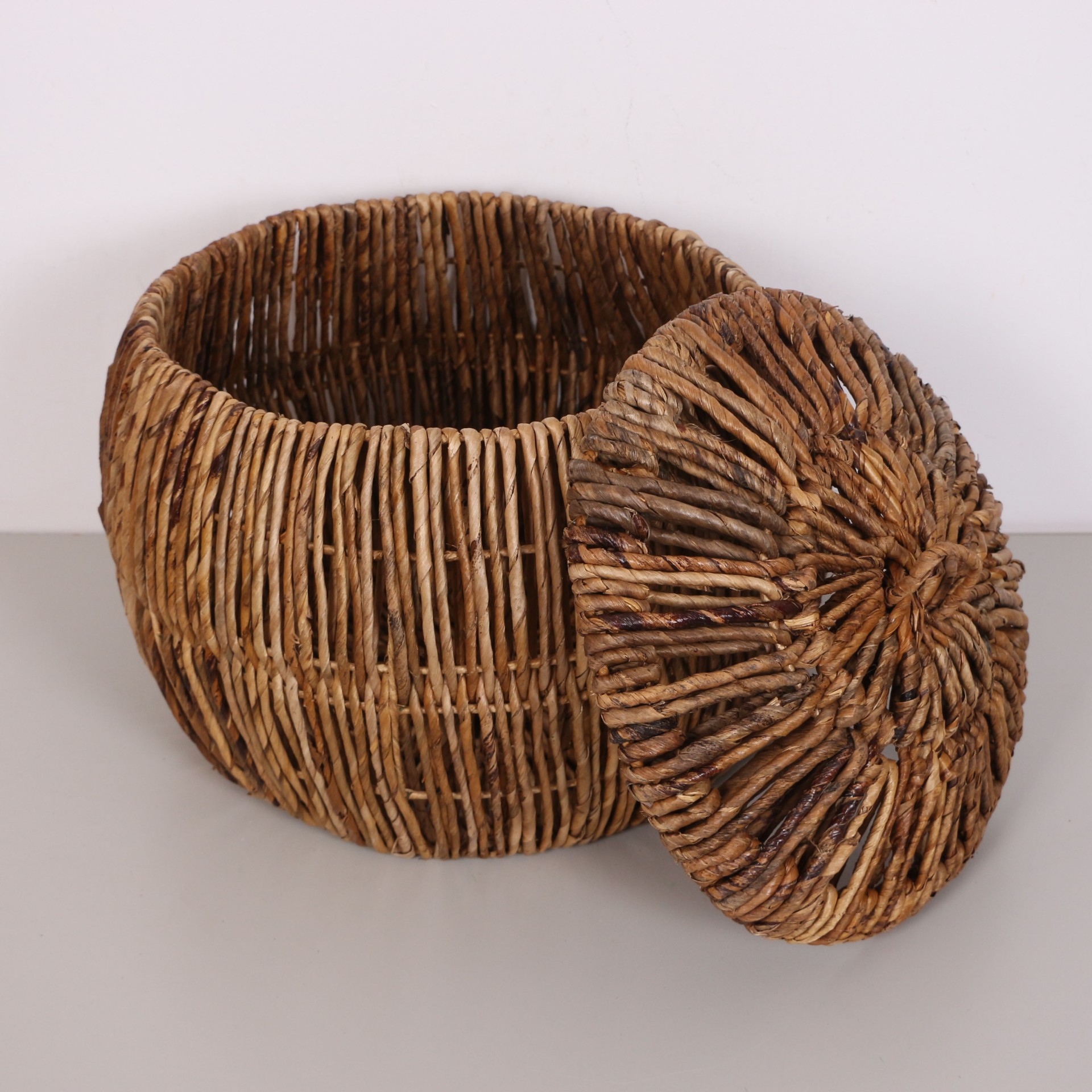 - Doğal Abaka bitkisinin yapraklarından örülen bu sepetlerimiz sağlam ve tok durması için bitkinin dokusuna uygun statik boyalı tel kafes üzerine tamamı el işçiliği ile örülmüştür.