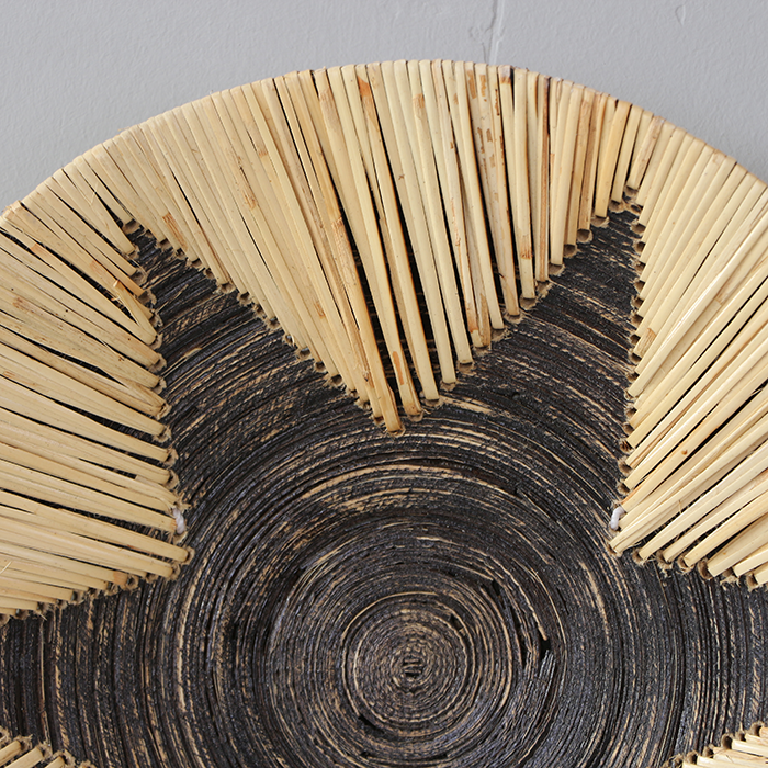 Çap: 30 cm Ürünümüz el yapımı bambu tabak üzerine rattan örülmüştür.