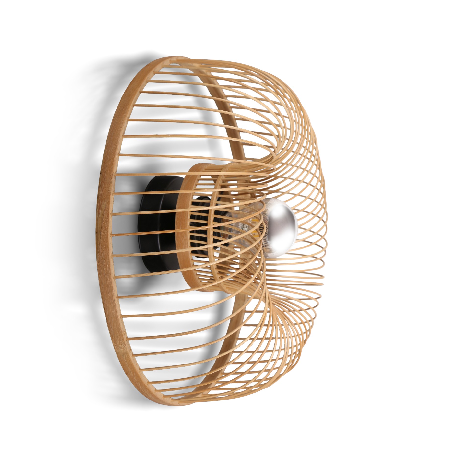 Tasarım: El işçiliğiyle örülmüş bambu lifleri · Sarmal formda dairesel ışık dağılımı · Duvar yüzeyine yumuşak gölge efekti veren yapı