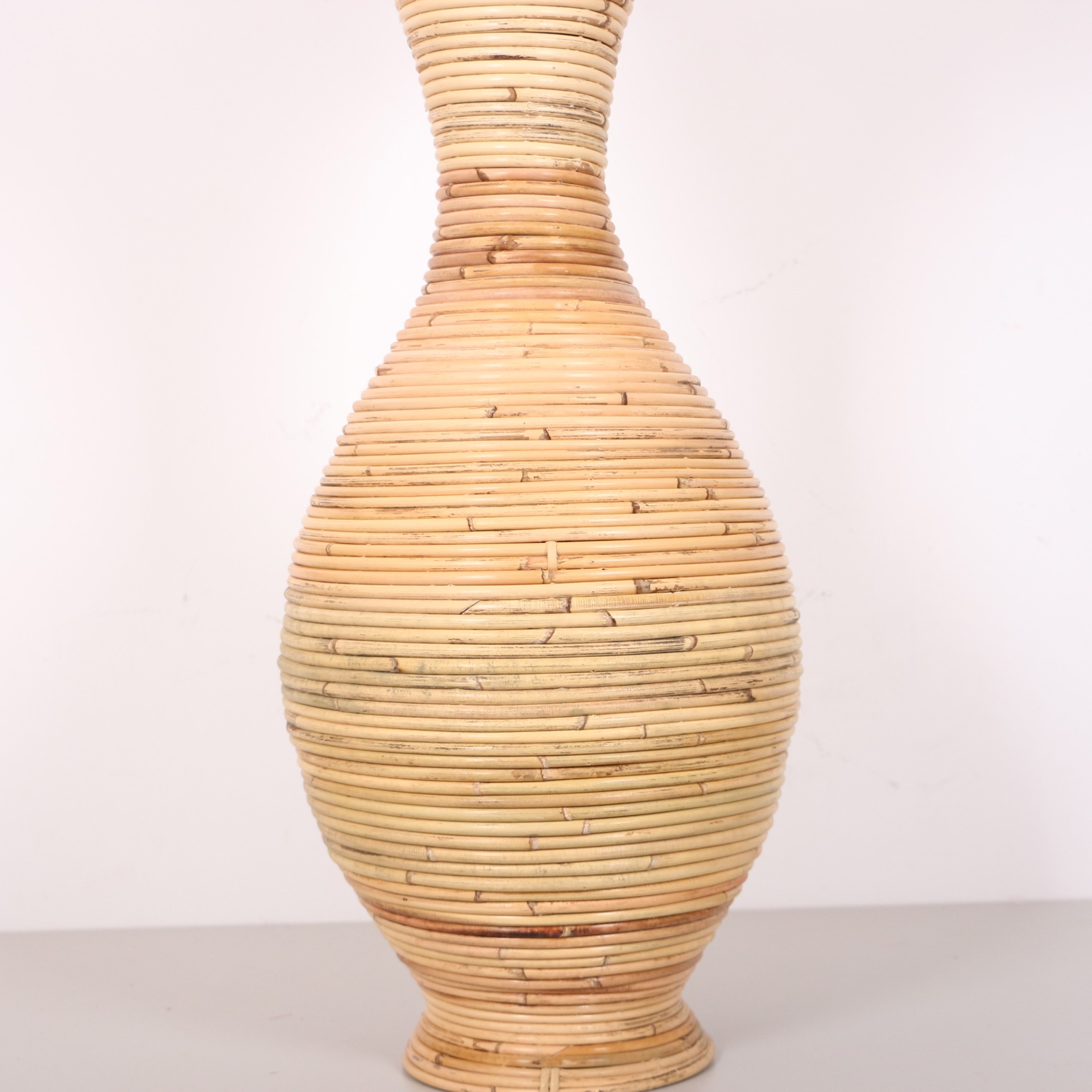 Kendi ekolojik ortamlarında yetişen bambu ve rattan bitkisinin sanatkar köy kadınları tarafından çeşitli işlemlerle dilimlenmesi,temizlenmesi el ile şekillendirilerek bambu gövde oluşturulması ve üzerine Doğal Rattan sarılması ile bu ürünümüz ortaya çıkmıştır.