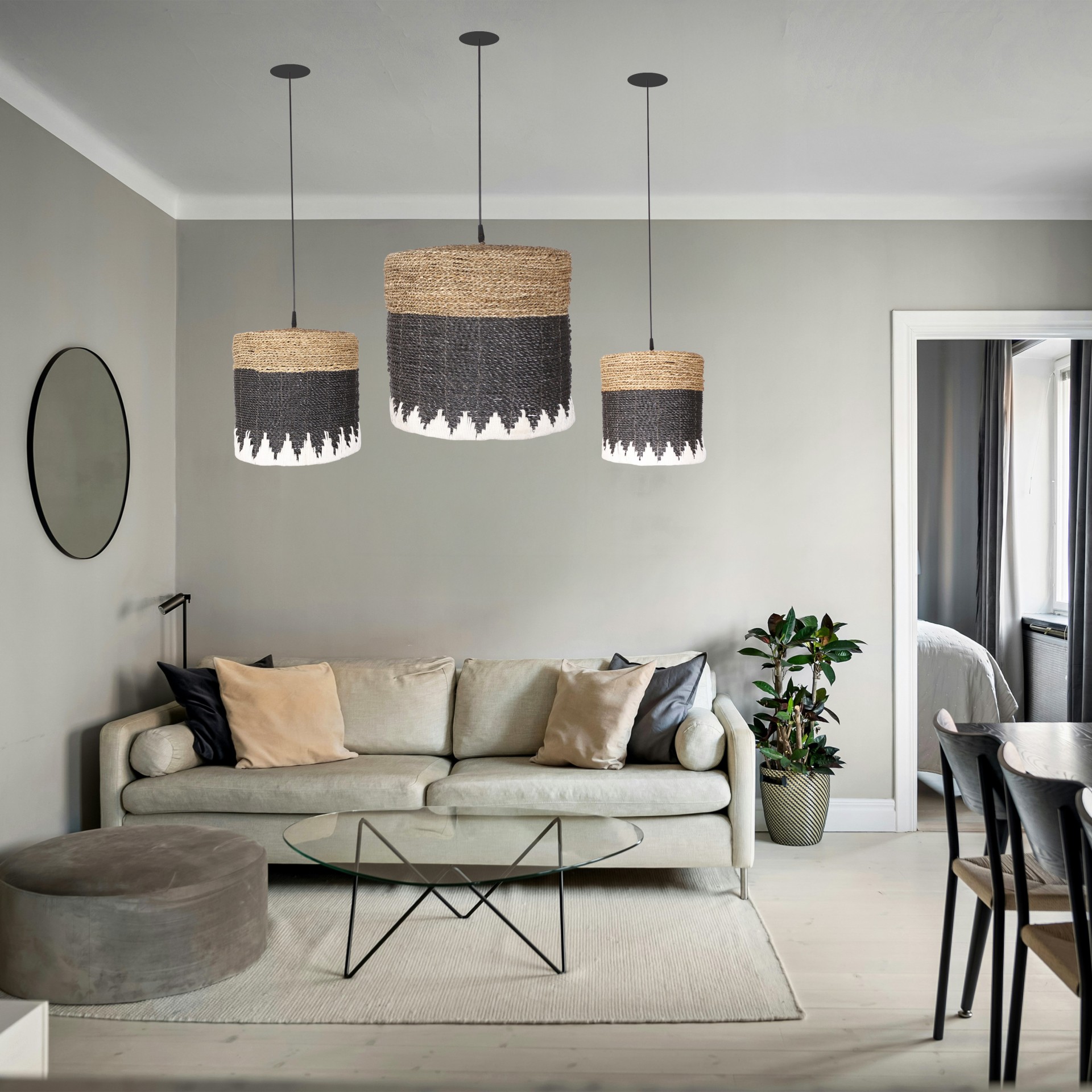- Ürünümüz doğal Muz Ağacının yapraklarından ve sentetik rafya ipinden, pamuk ipliği ile desen verilerek zanaatkar ustalarımızca tamamen el işçiliği ile üretilmiştir. Aydınlatmamızın tok ve şık bir dokusu vardır.