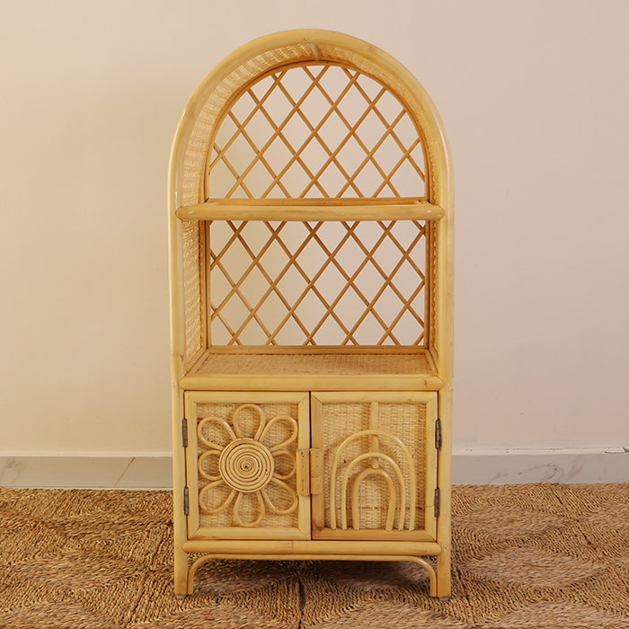 Dekoratif Bambu Dolap 102 cm yükseklik. 50 cm eni. 35 cm derinlik. Doğal rattan ve doğal hazeran kullanılarak el işçiliği ile üretilmiştir.