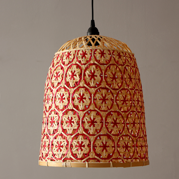 Kırmızı & Doğal Motifli 30x40 cm. Bambu Lamba