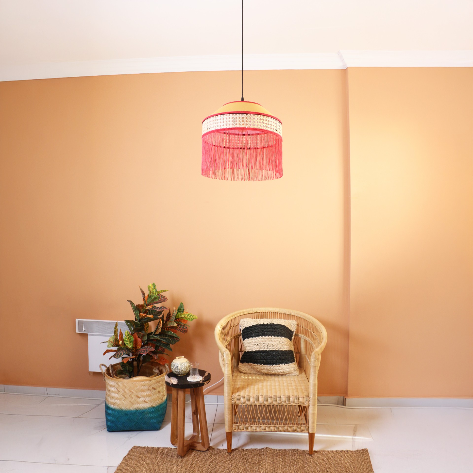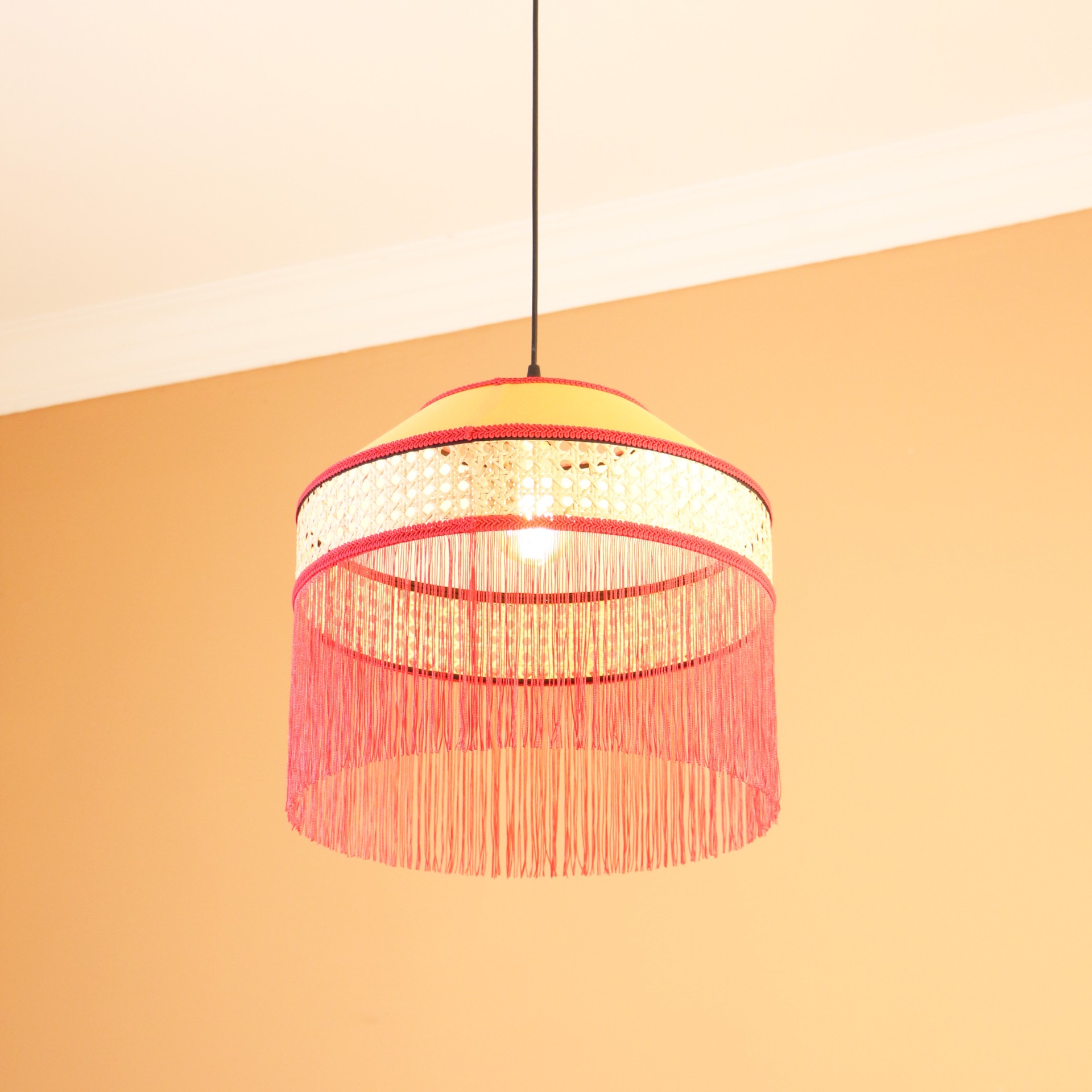 İmalat Ürünümüz; Işık geçirgenliğiolan abajur kumaşı ve doğal hazeran kullanılarak, statik boyalı tel üzerine el işçiliği ile üretilmiştir. İmalat ürünümüzde, bütün detaylar düşünülerek saçak, kadife biyeler, sutaşı ve özel ipler kullanılmıştır.