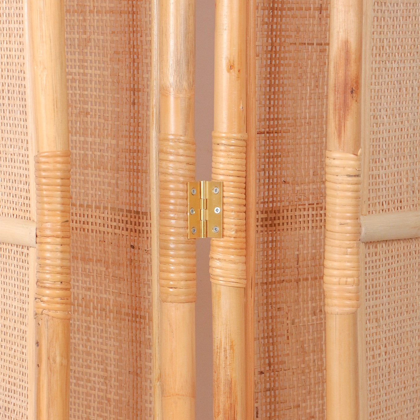 Doğal Rattan ve Hazeran Grand Dörtlü Paravan 190x183 cm |