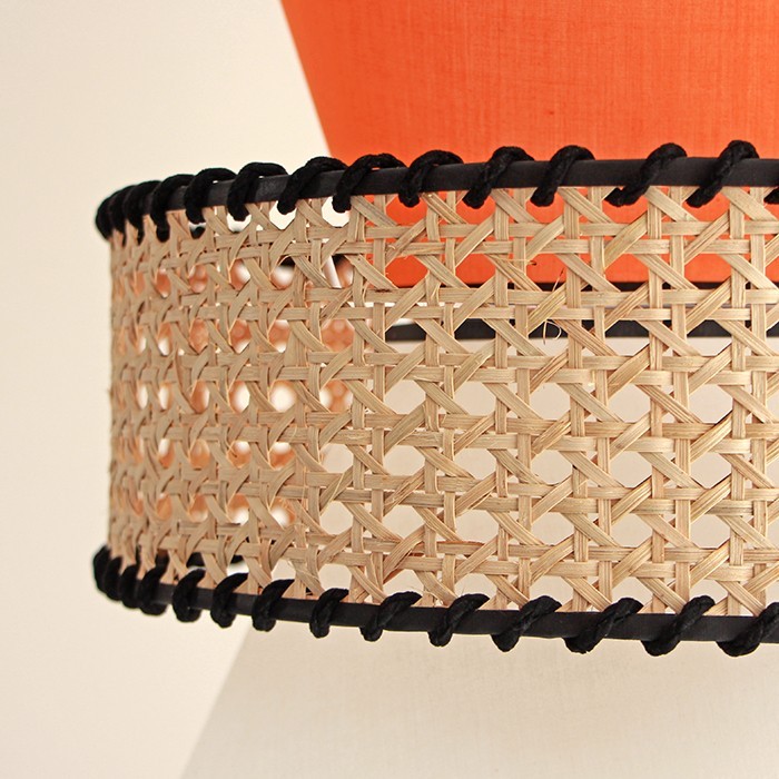 • Ürünümüz doğal hazeran malzemeden ve ışık geçirgenliği olan abajur kumaşından statik boyalı tel üzerine el işçiliği ile üretilmiştir.