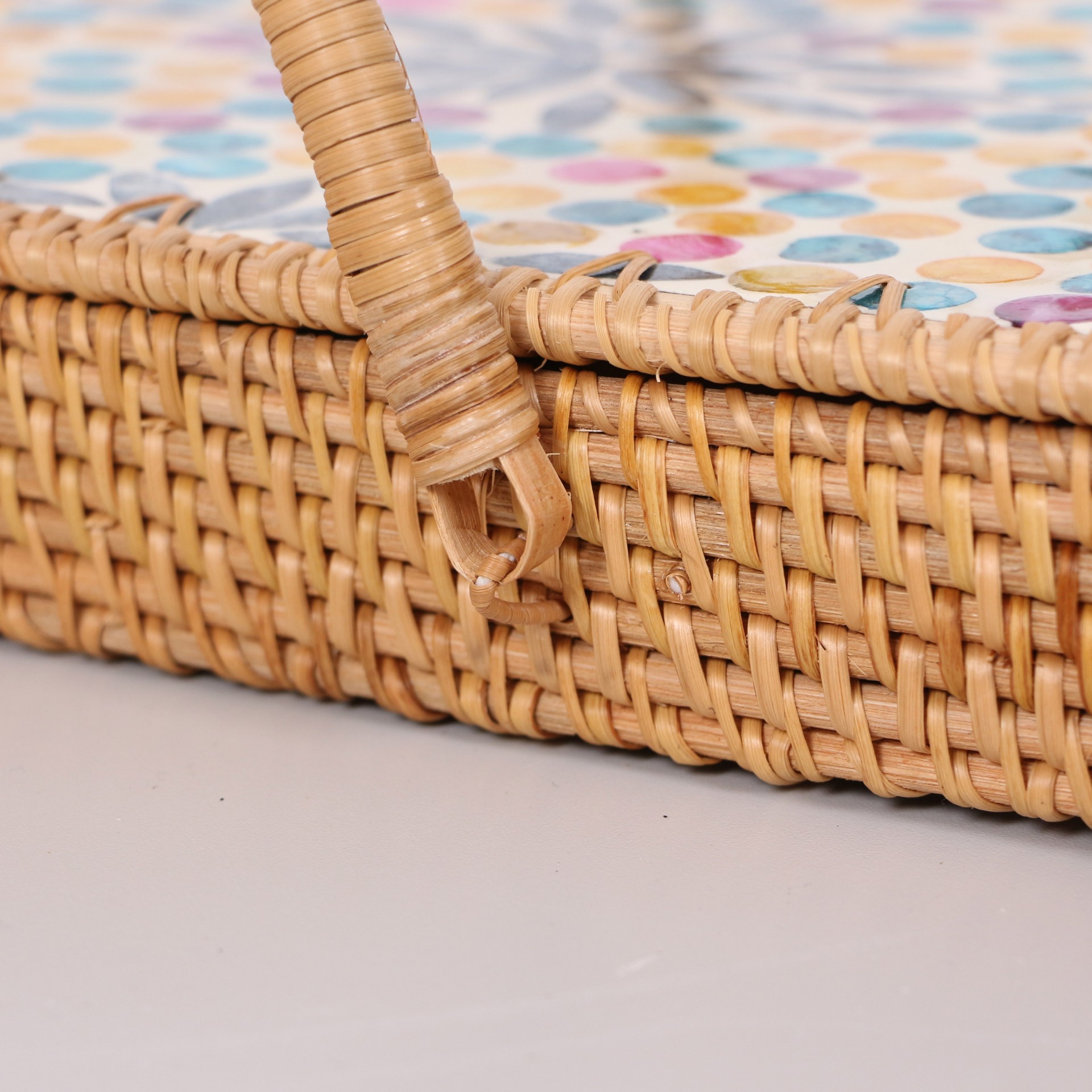 Ürünümüz zanaatkar ustalarımızca, doğal rattanın sık dokuma olarak ve doğal sedeflerden desen verilerek el işçiliği ile yapılmıştır. Sağlığa zararı olmayan PU vernik kullanılarak ürünün korunması sağlanmıştır.