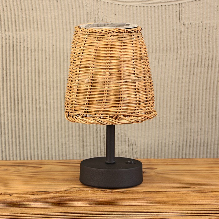 Krizantem 24x14 cm. Siyah Ayaklı Rattan Beyaz Panelli Solar Lamba