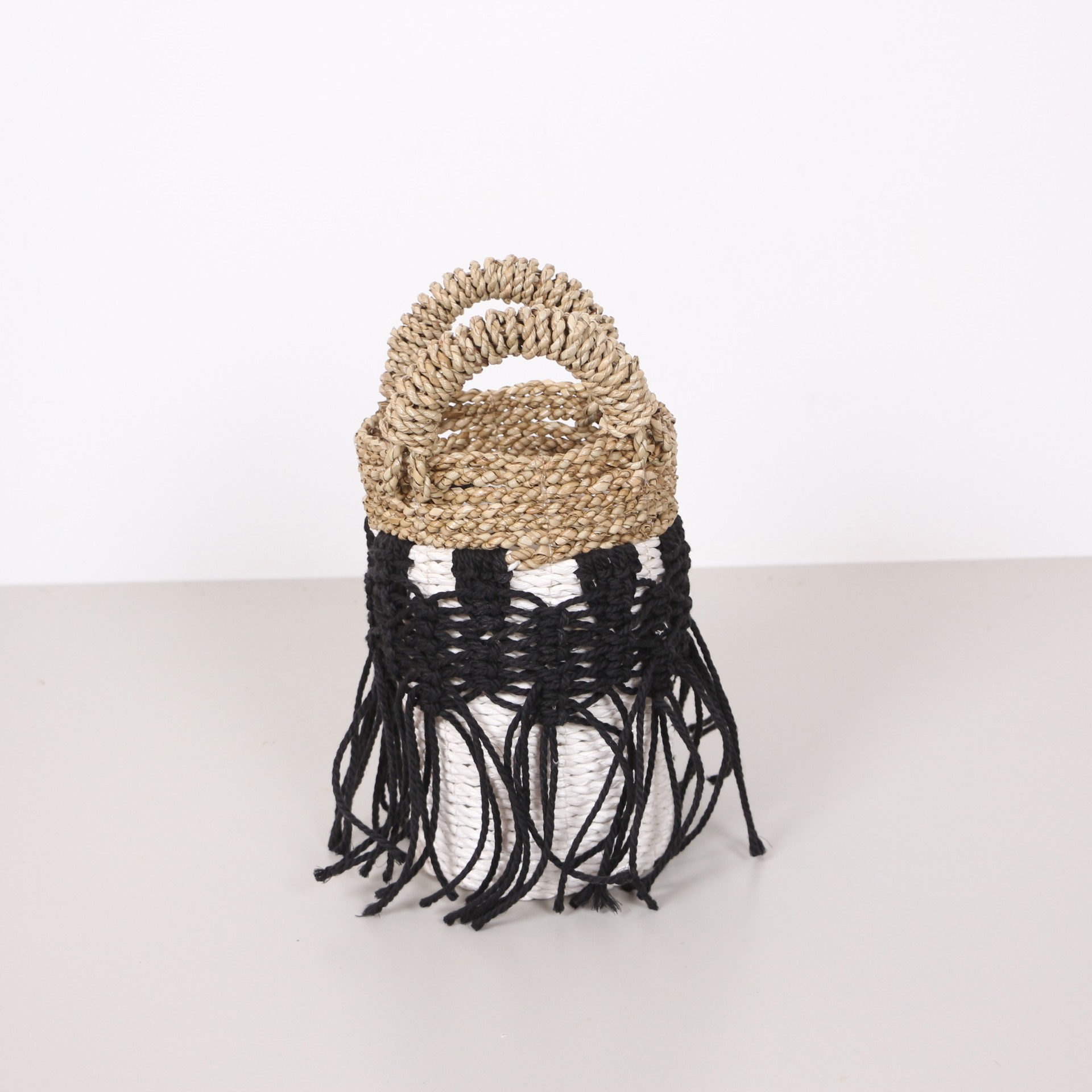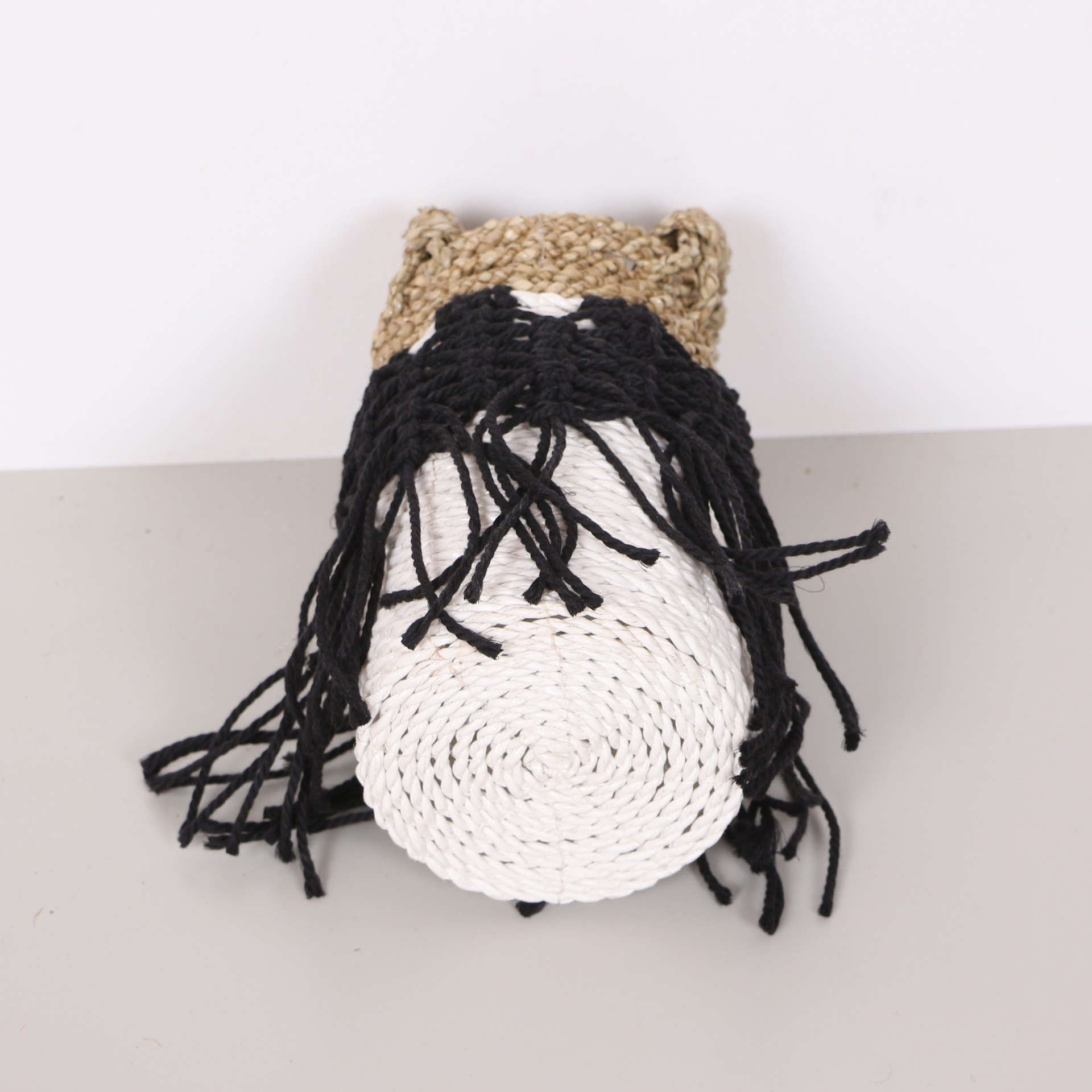 - Ürünümüzün tamamı doğal abaka bitkisinden zanaatkar ustalarımızca, yine abaka üzerine pamuk ipliği ve sentetik rafya ile desen/şekil verilerek tamamı el işçiliği ile üretilmiştir. Tabam Kısmı Sentetk Rafya ie Örülmüştür.