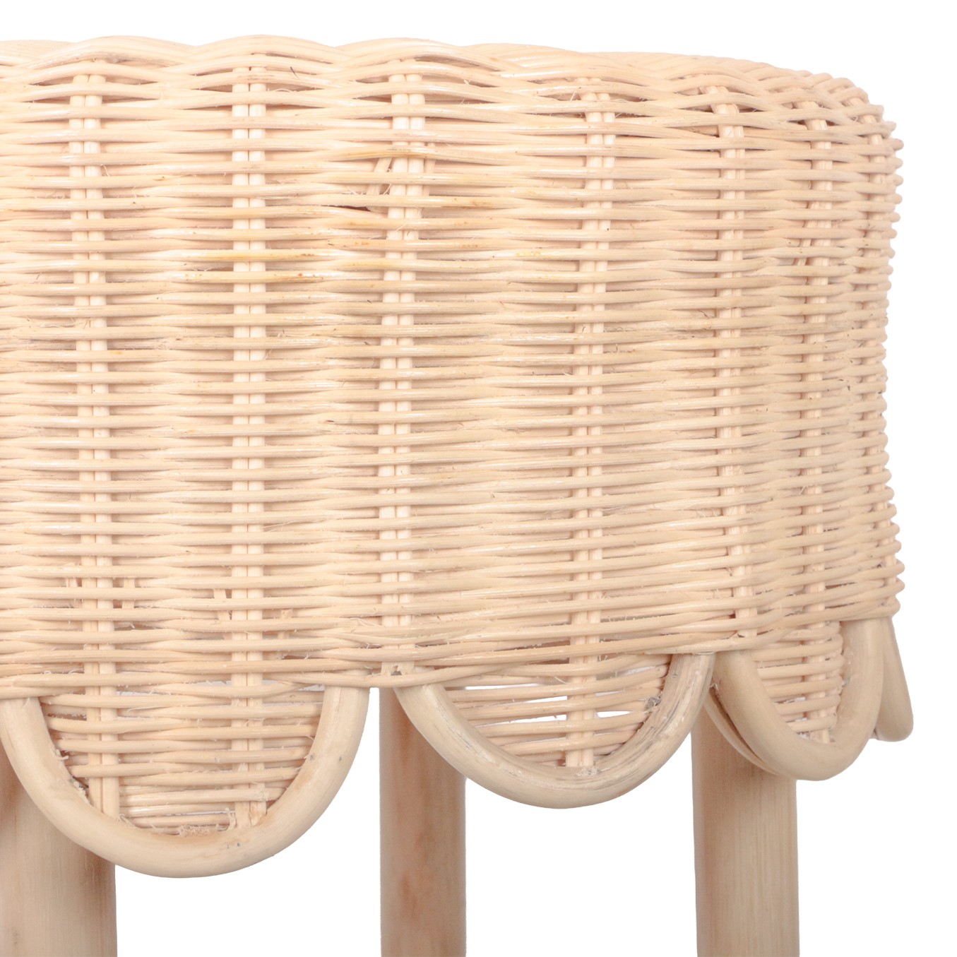 40x45 cm ölçüleri sayesinde yaşam alanlarında hem şık hem de pratik bir tamamlayıcı görevi görür. Doğal rattan gövde, sıcak bej tonları ve yumuşak dokusuyla evin her köşesinde rahatlık hissi yaratır. Gövdeyi destekleyen doğal teak ağacı ayaklar, dayanıklılık ve estetik açıdan ürünü üst seviyeye taşır. Teak ağacı; uzun ömürlü, sağlam ve doğal yapısı sayesinde özellikle doğal mobilya üretiminde tercih edilen değerli bir malzemedir.