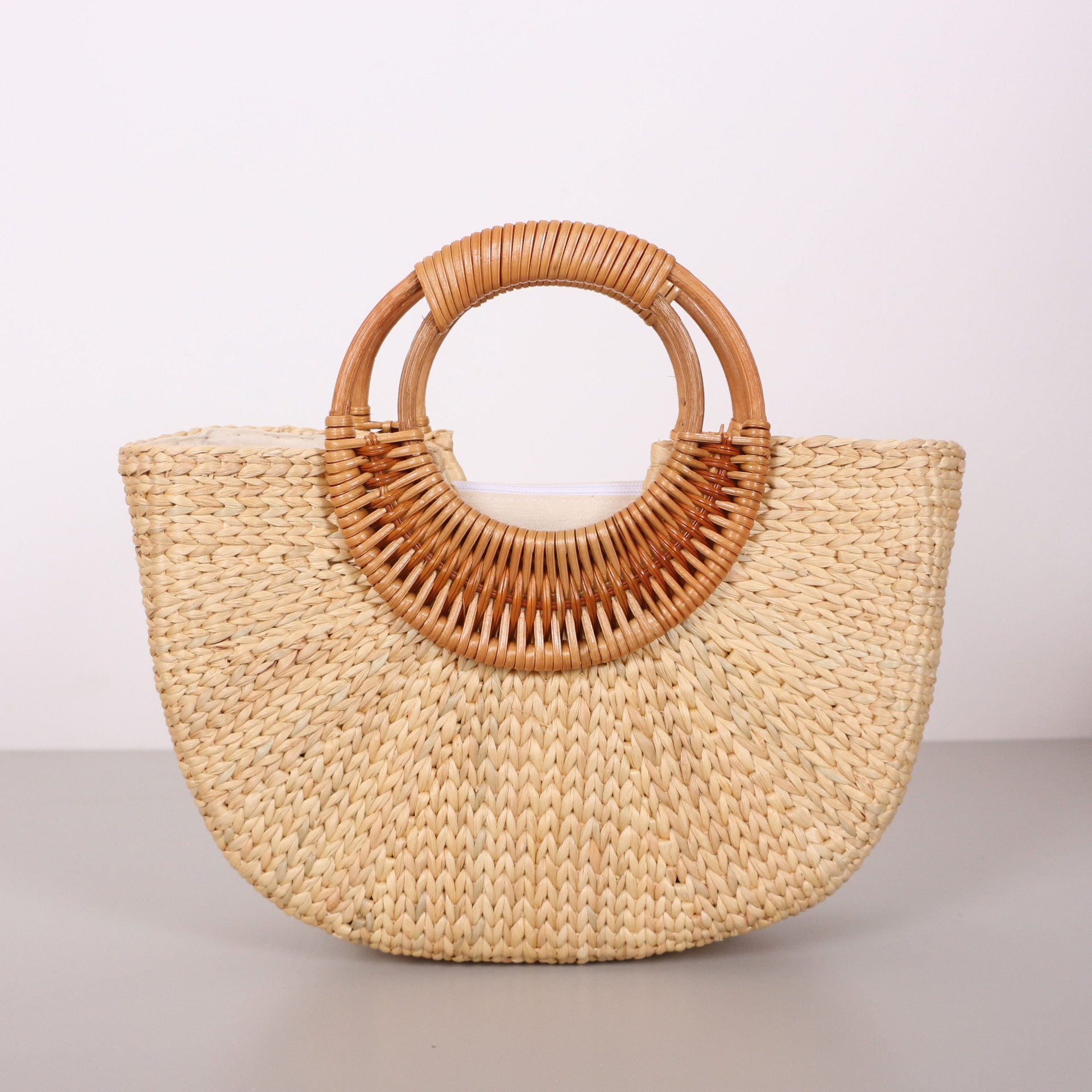 Ürünümüz doğal su sümbülünden tamamı elde üretilmiştir. Ağız kısmı fermuarlı ve keten kumaş ile kaplıdır. Dişbudak ağacından yapılsn sap kısmı rattan ile kaplanarak dekor edilmiştir.