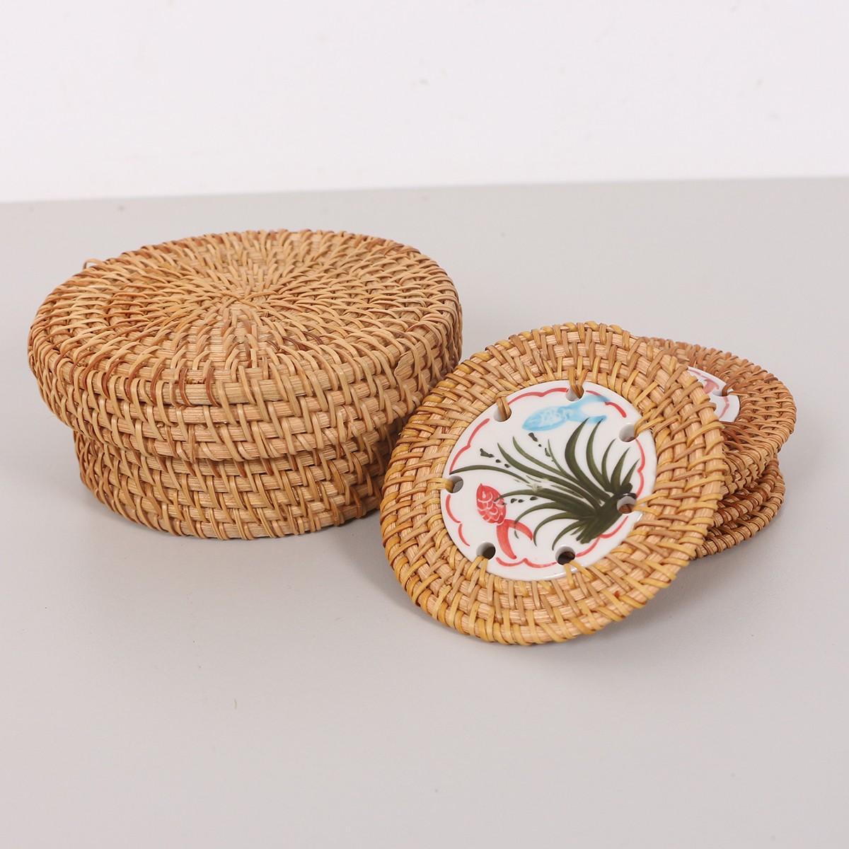 Rattan Altlık Çapı: 10 cm. Seramik çapı : 6 cm