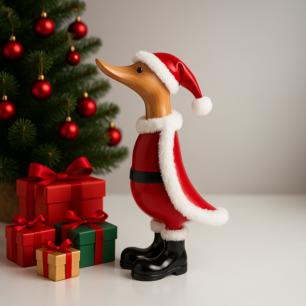 NOEL BABA ÖRDEK EL OYMASI TEAK GÖVDE 41x17x13 cm.