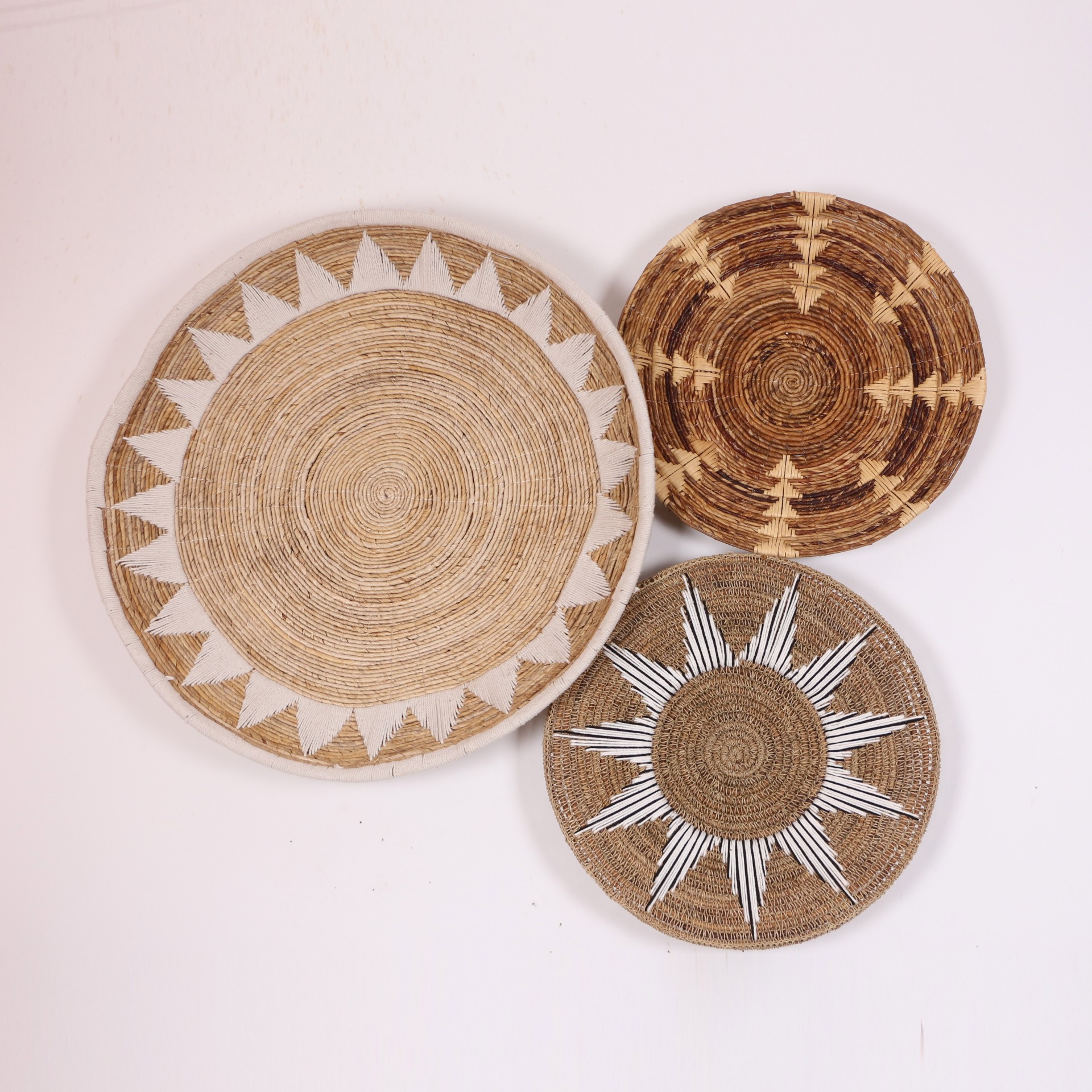 - Ürünümüzün tamamı doğal Abaka bitkisinden zanaatkar ustalarımızca, yine rafya sarılı tabak şeklinde tel kafes üzerine pamuk ipliği ile desen verilerek el işçiliği ile üretilmiştir. Arkasında tel kafese sabit metal askılık ürünün duvarda daha belirgin ve tok durmasını sağlamıştır.