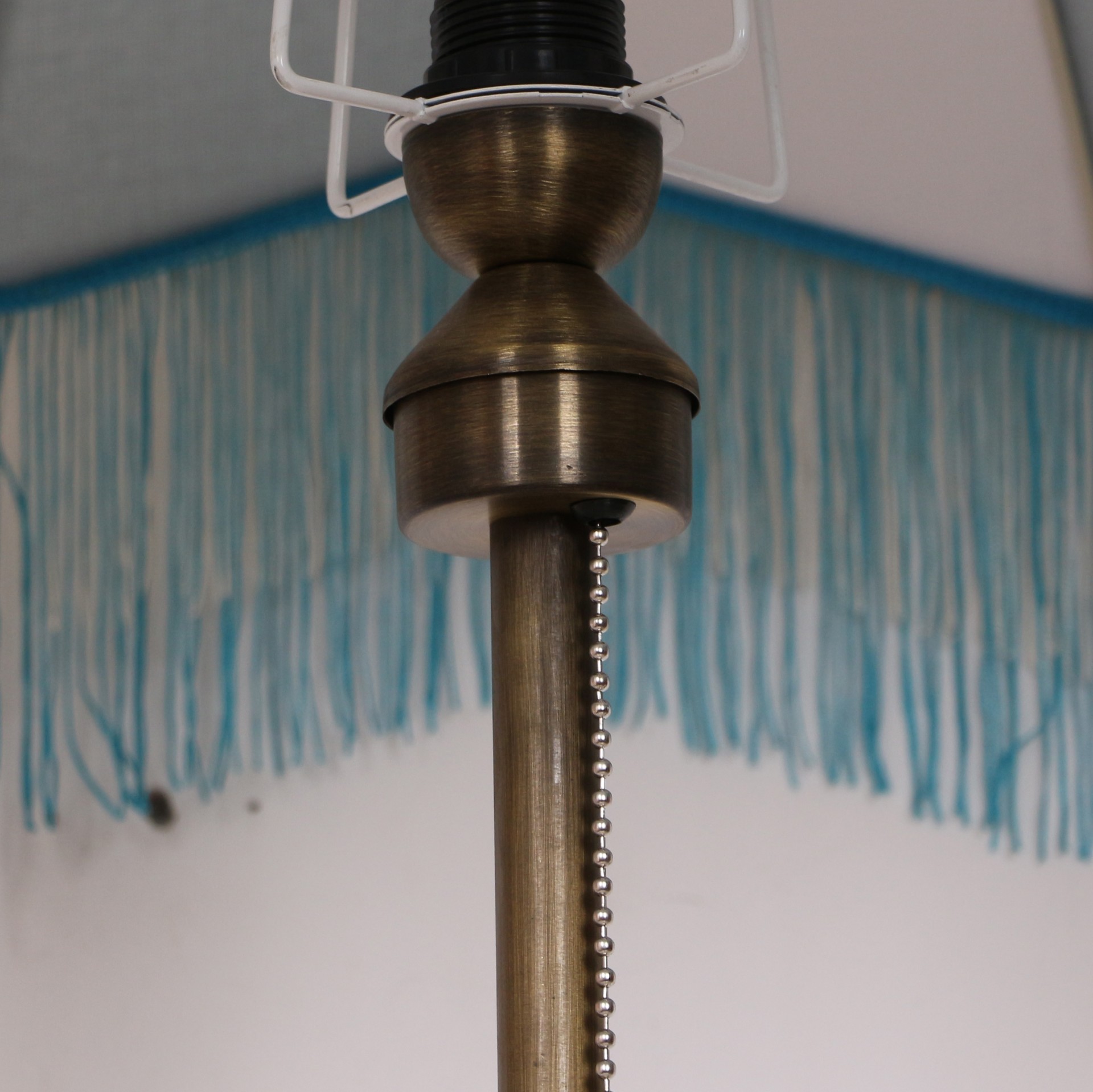 - İmalat Ürünümüz; doğal hazeran malzemeden ve ışık geçirgenliği olan abajur kumaşından statik boyalı tel üzerine el işçiliği ile üretilmiştir. İmalat ürünümüzde, bütün detaylar düşünülerek saçak, kadife biyeler, sutaşı ve özel ipler kullanılmıştır