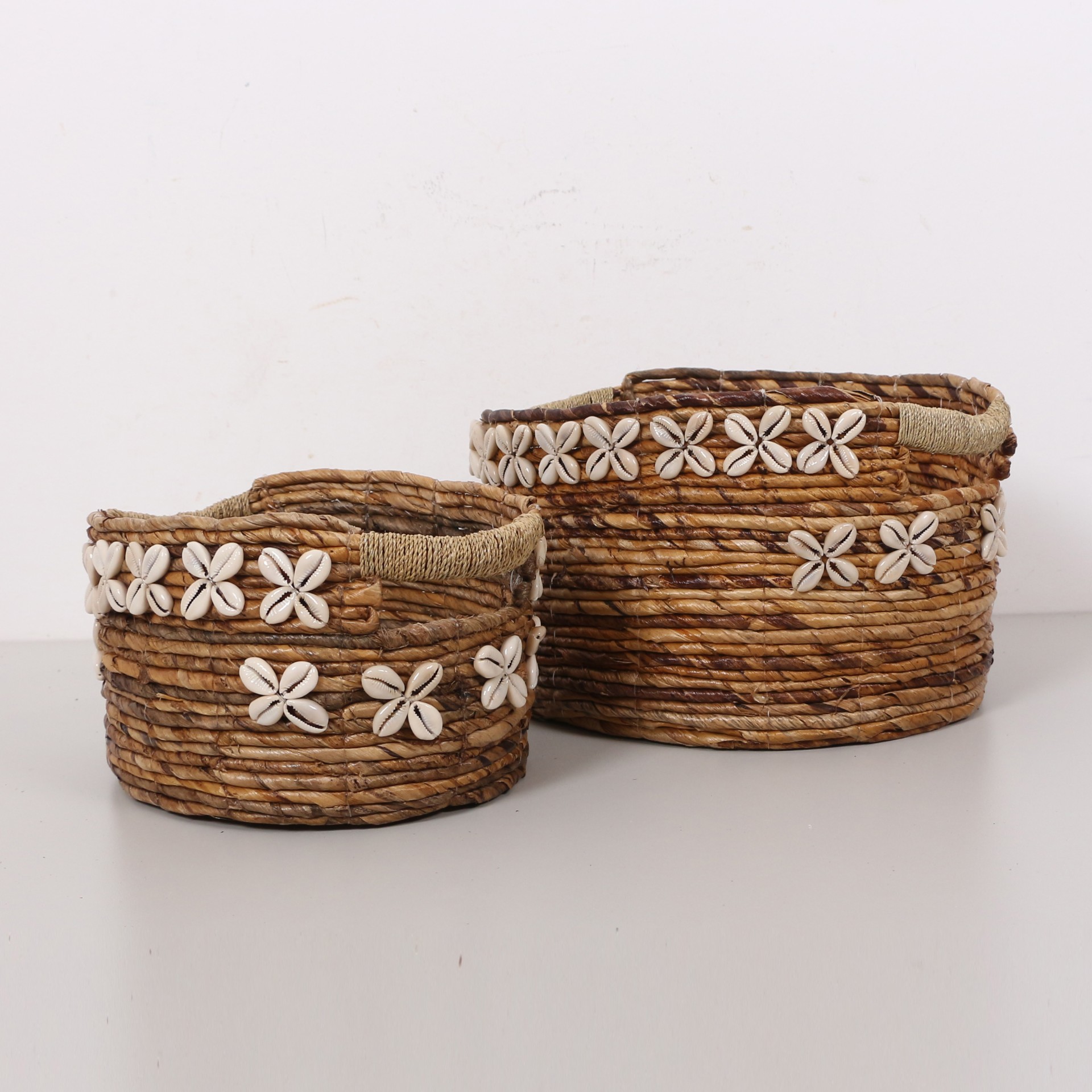 - Abaka bitkisinin yapraklarından örülen bu sepetler sık aralıklarla iple dikildiği için Sert ve Tok bir duruşu sağlanmıştır. Deniz Kabukluları ile süslenmiştir.