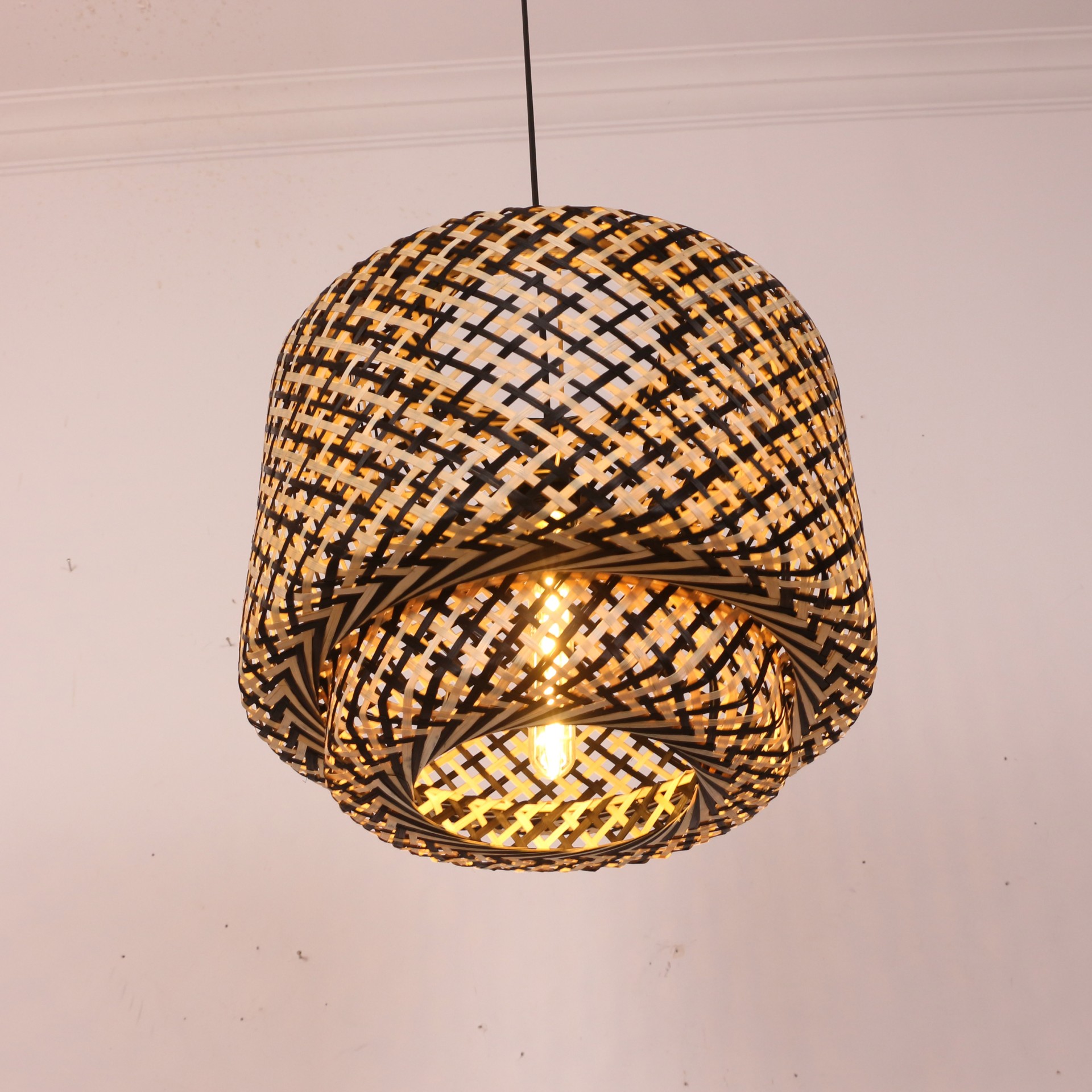 Sitrus 40x37 cm. Siyah / Naturel Bambu Avize