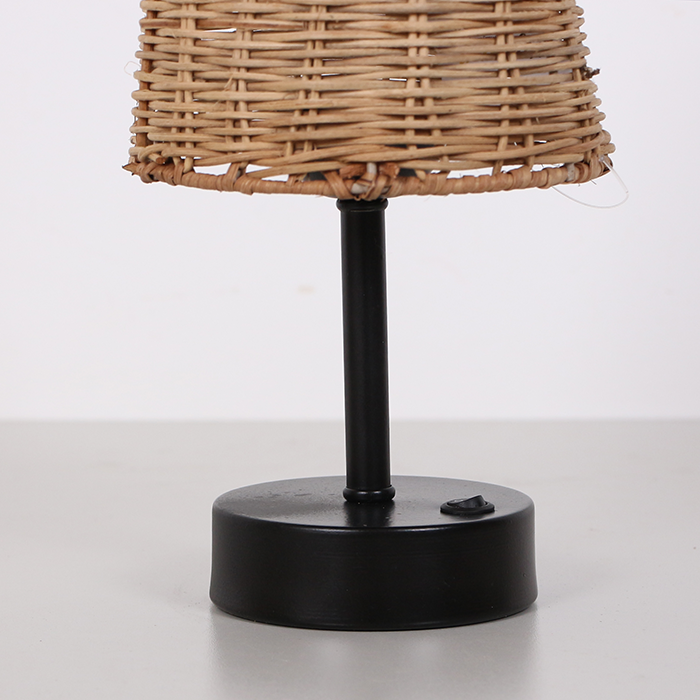 Krizantem Güneş Enerjili Masa Lambası & Mat Siyah Ayaklı 24x14 cm. Doğal Rattan