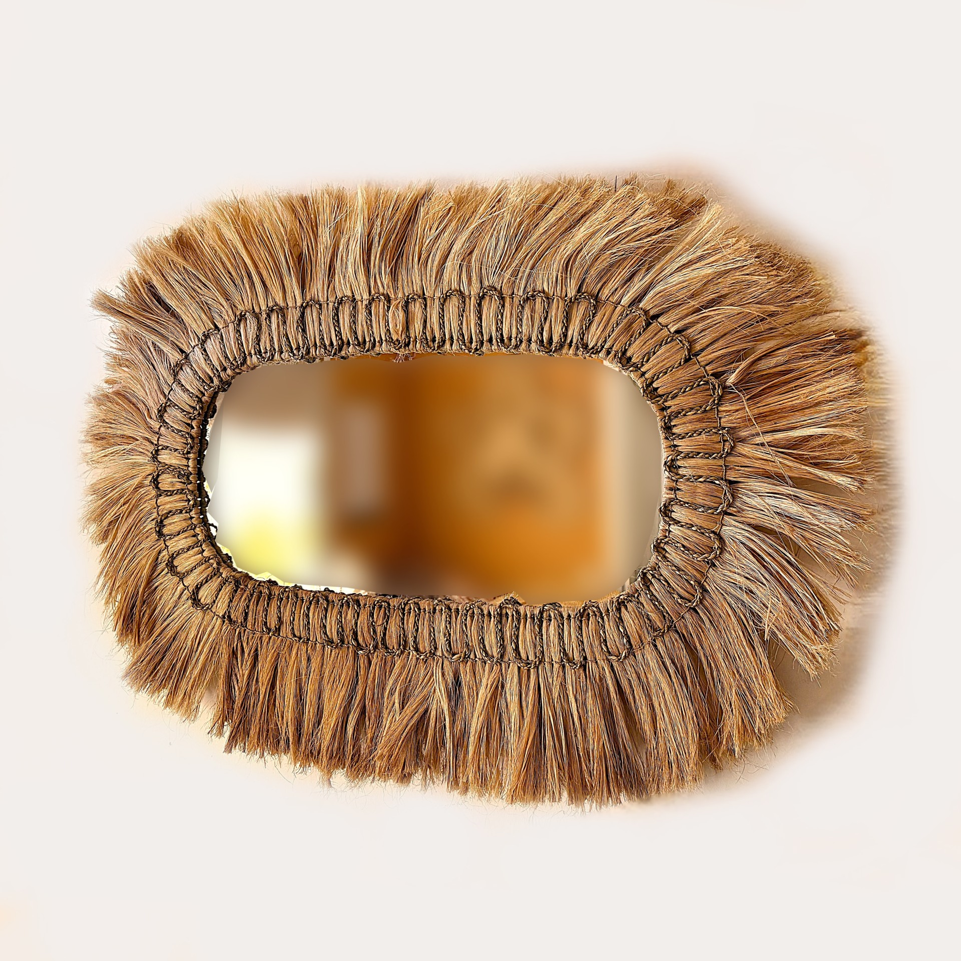 Malzeme Abaka lifi (doğal) · El dokuma çerçeve · Ayna camı