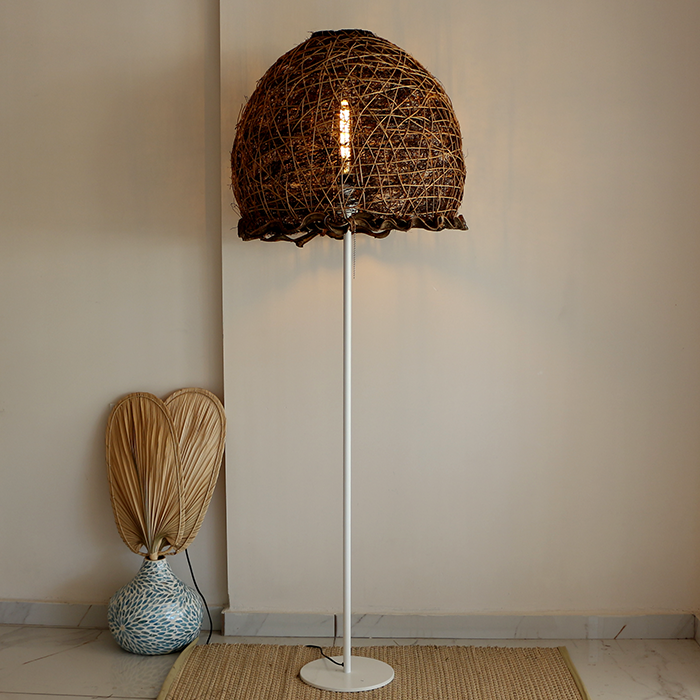 • Afrika 65x55 cm. Beyaz Ayaklı Rattan Lambader
