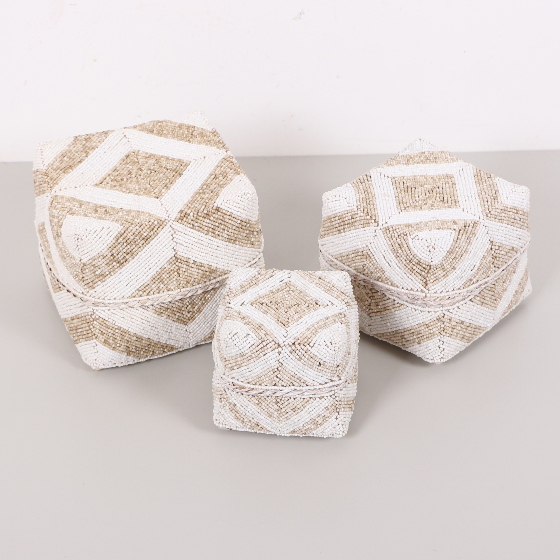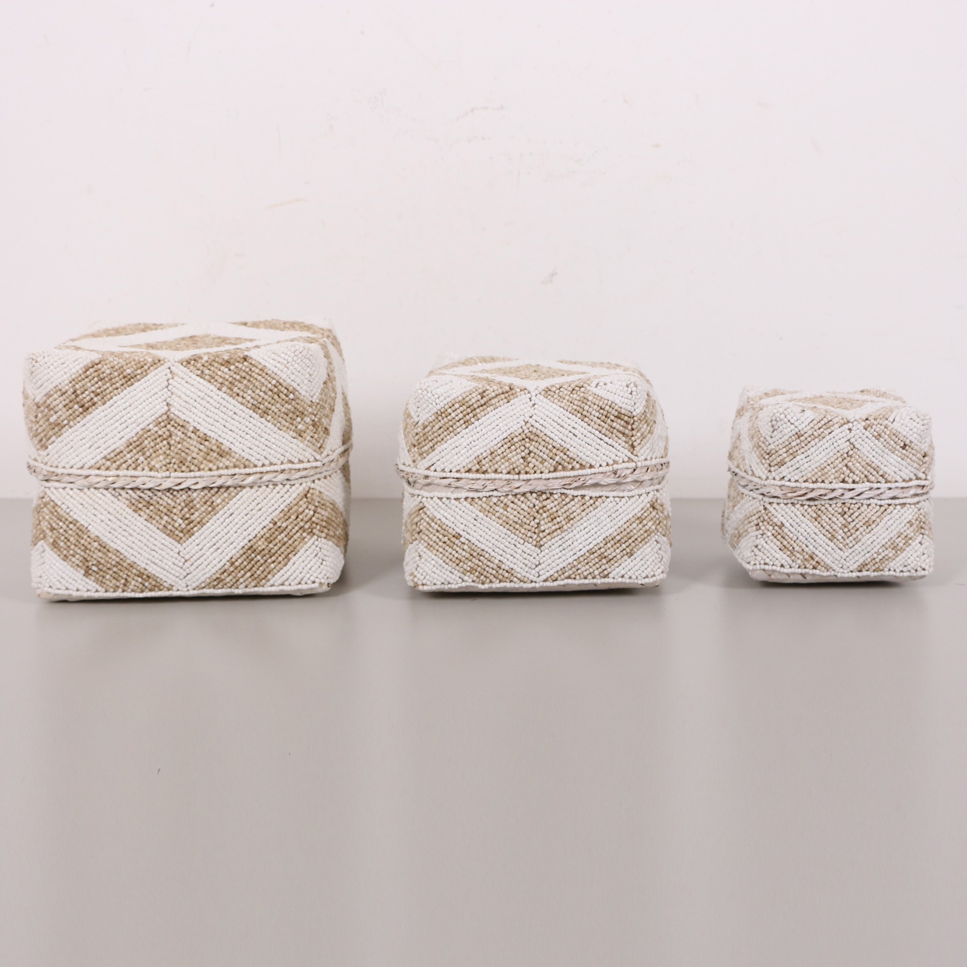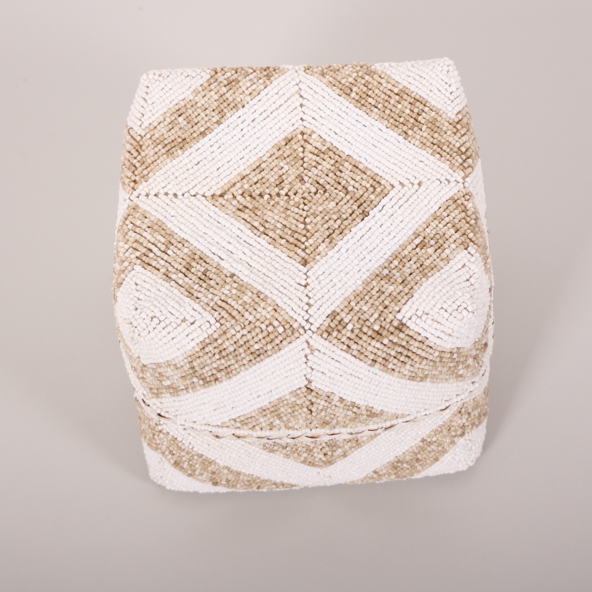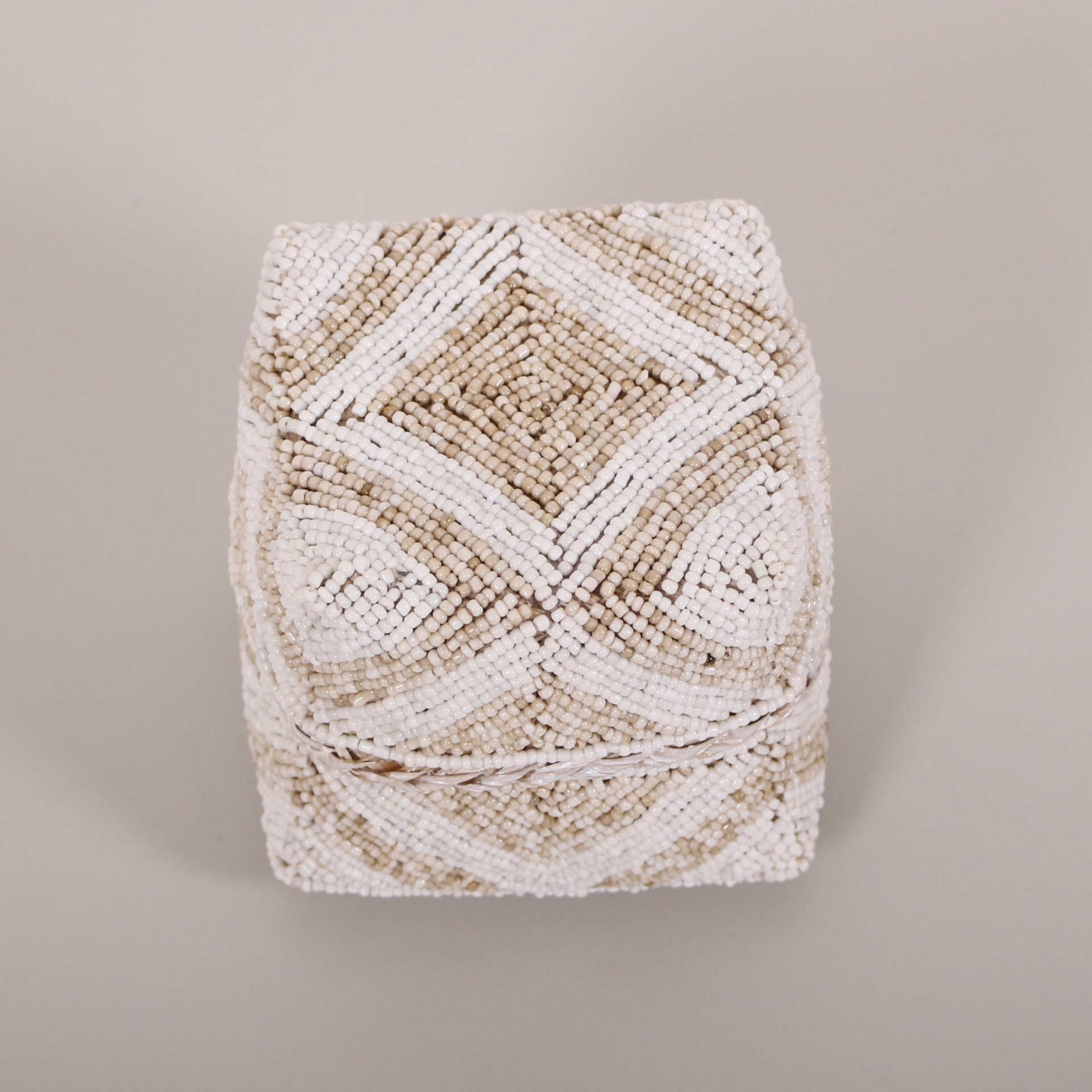 - Doğal Bambunun dış kabuğundan el işçiliği ile örülmüştür. Minik Cam boncuklarla farklı desen ve renklerde bambu kutunun üzerinde el işçiliği ile dekor verilerek, kapak kısmında püskülle tamamlanmıştır.