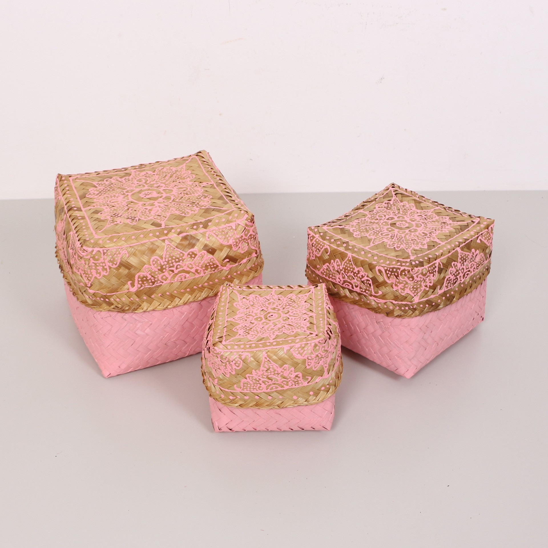 • Doğal Bambunun dış kabuğundan el işçiliği ile örülmüştür. Özel boyalarla farklı desen ve renklerde bambu kutunun üzerinde el işçiliği ile dekor verilmiştir..
