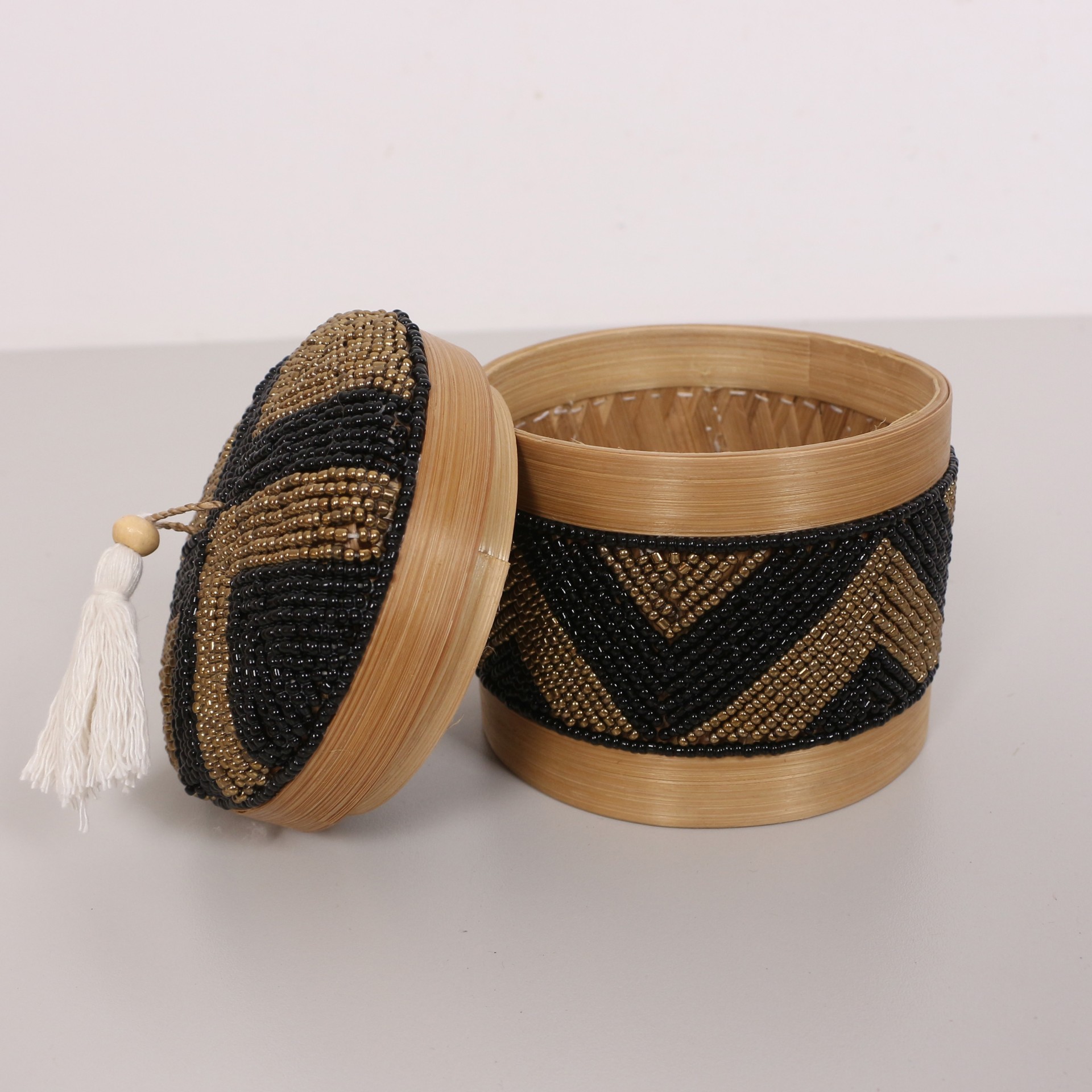 Bali Boncuklu Bambu Saklama Kutuları 3 lü SET