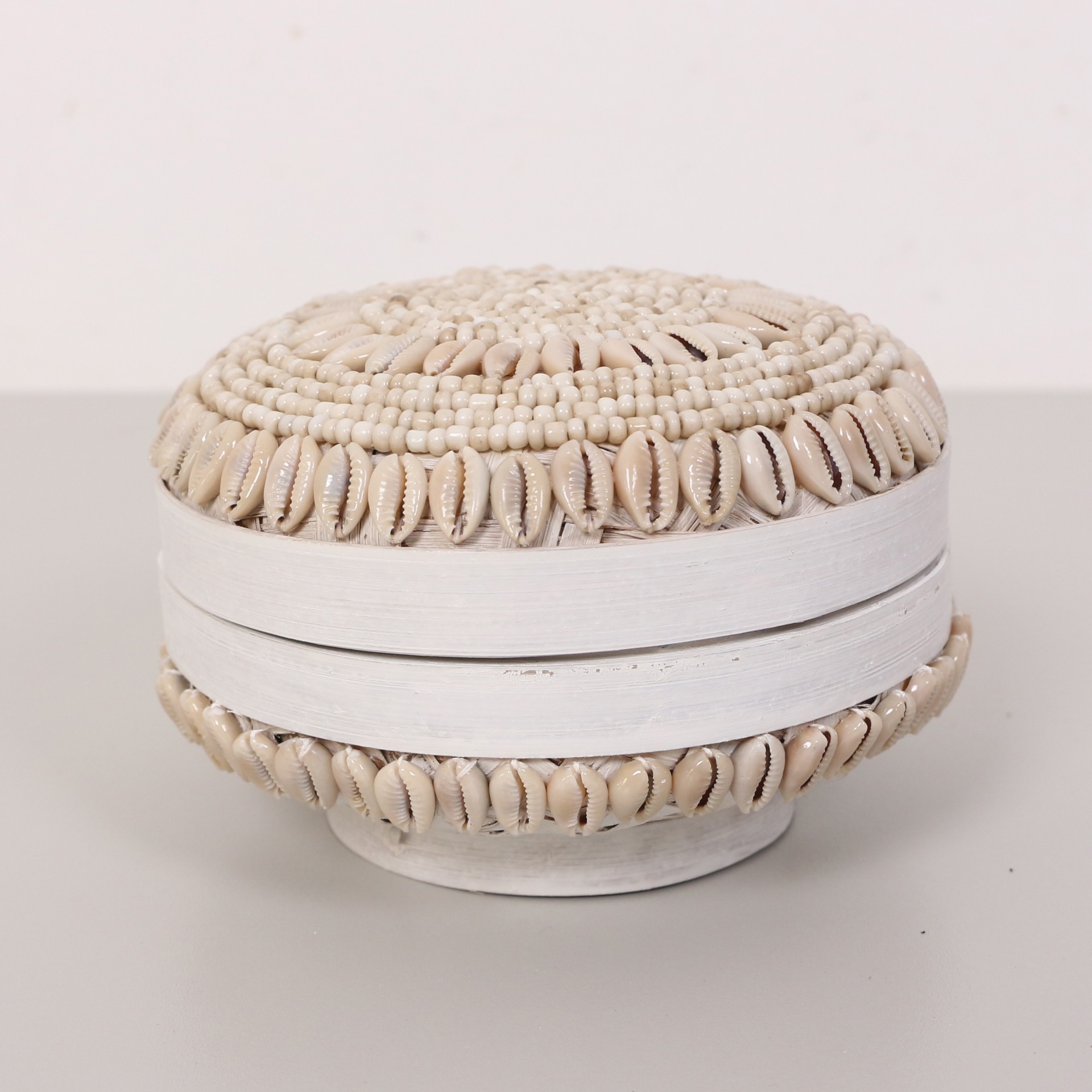 - Doğal Bambunun dış kabuğundan el işçiliği ile örülmüştür. Minik Cam boncuklarla farklı desen ve renklerde bambu kutunun üzerinde el işçiliği ile dekor verilerek, kapak kısmında püskülle tamamlanmıştır.