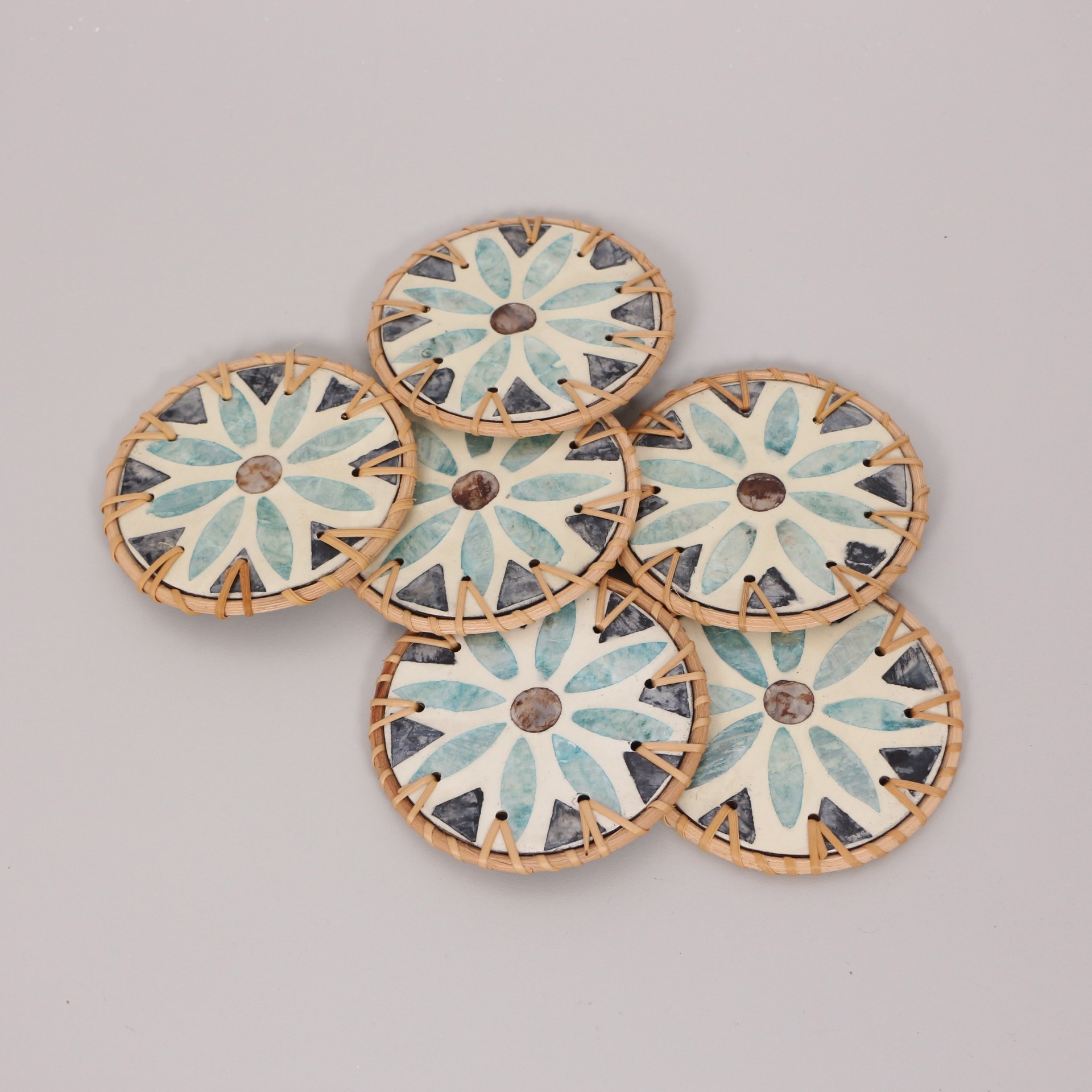 • Muteber Rattan 6'lı Sedefli Bardak Altlığı