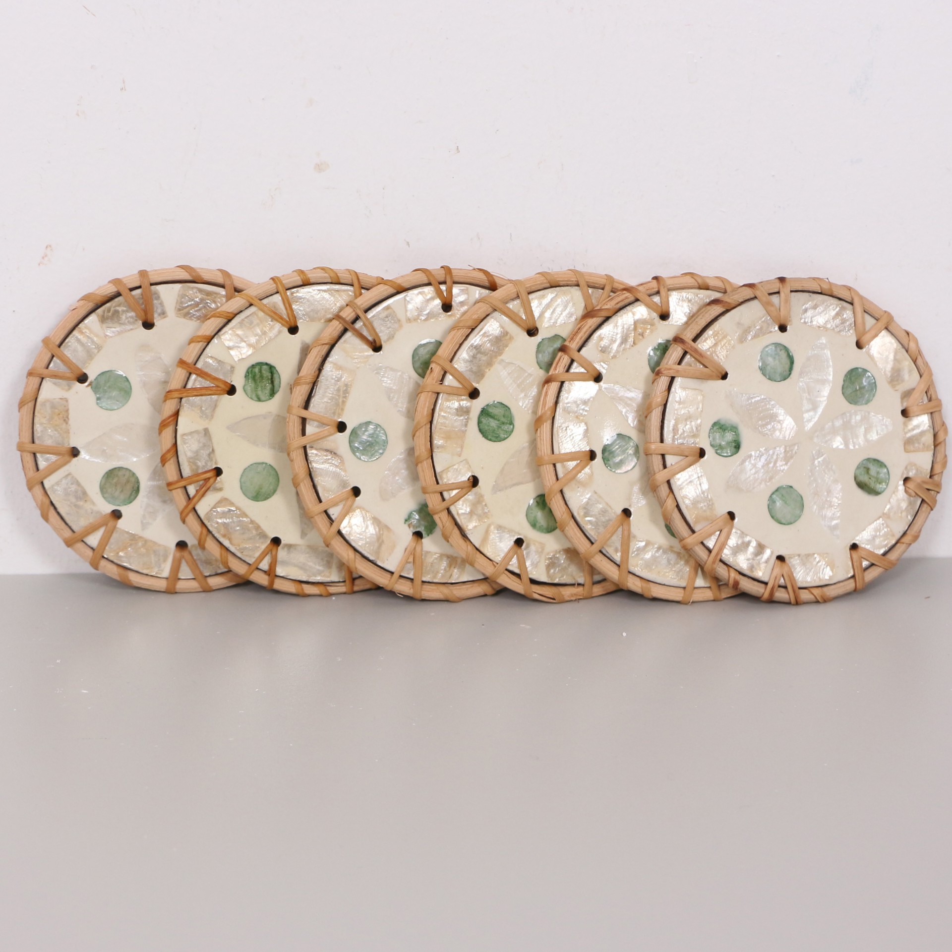 • Muteber Rattan 6'lı Sedefli Bardak Altlığı