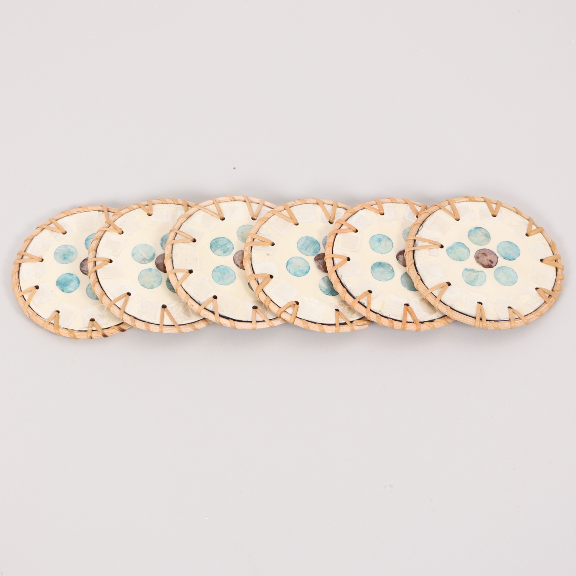 Muteber Rattan 6'lı Sedefli Bardak Altlığı